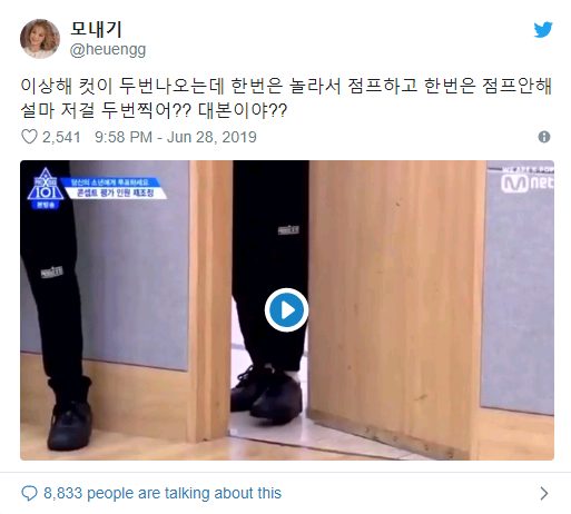 Netizen tin cảnh quay này là dàn dựng, và nhiều người chia sẻ quan điểm rằng nhà sản xuất đã lên kịch bản để phân chia thời lượng ghi hình dành cho các thực tập sinh. Không ít người tỏ ý tức giận vì đây là một chương trình mà các National Producer bình chọn dựa trên những gì quan sát được, nhưng đơn vị sản xuất lại muốn thao túng sự quan sát của họ.