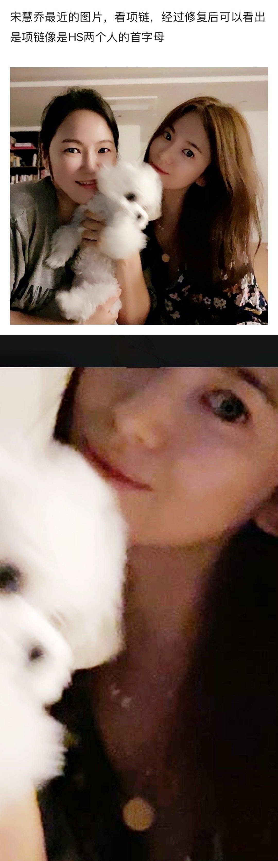 Tiếp theo, họ nói rằng Song Hye Kyo đã đeo sợi dây chuyền có chữ cái HS - được cho là giống với tên viết tắt chữ cái đầu của Hyun Bin và Song Hye Kyo. Cuối cùng, nữ diễn viên Park Sol Mi đăng tải video màn hình bài hát mang tên Oh Tears, Oh Sadness do Soya thể hiện - nhạc phim truyền hình Thế giới họ đang sống đài KBS. Được biết, đây là bộ phim do cặp đôi đảm nhận vai chính, phát sóng vào năm 2008. Sau khi nảy sinh mối quan hệ tình cảm trong tác phẩm này, họ đã quyết định hẹn hò với nhau. Dưới bài đăng, Song Hye Kyo đã để lại bình luận như sau: “Chị à, hahaha”.