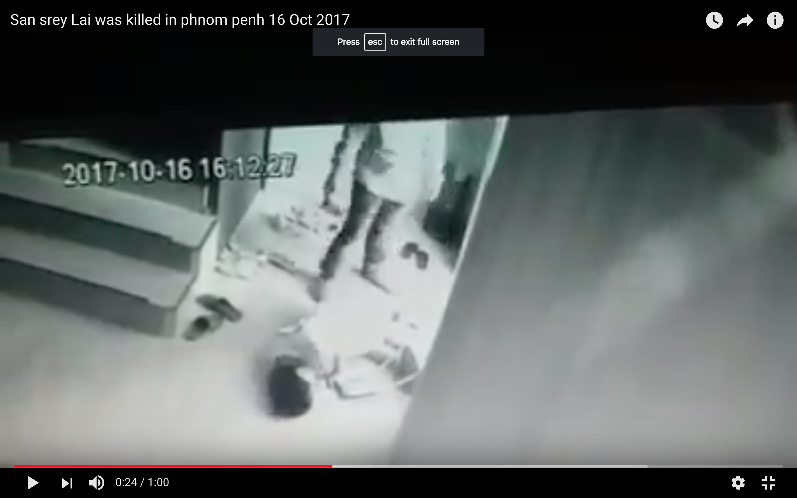 Đoạn clip ghi lại hình ảnh San Sreylai bị chồng giết hại hiện đang được phát tán chóng mặt trên facebook.
