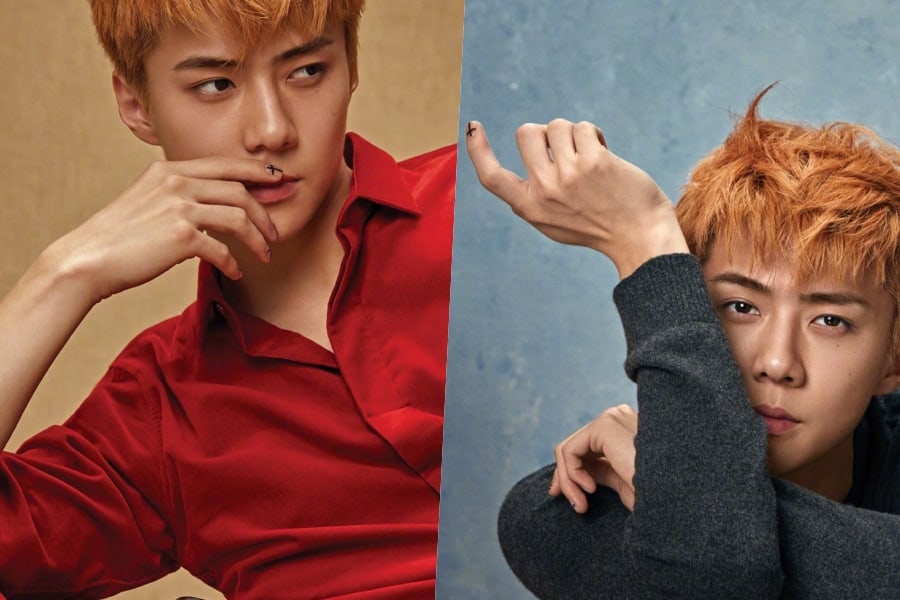 Các thành viên của EXO cũng không xa lạ gì với sơn móng tay. Xiumin là một thành viên đặc biệt được biết đến với việc thể hiện một số màu móng táo bạo. Sehun, thành viên trẻ nhất của EXO cũng là người mẫu trang bìa đầu tiên cho tạp chí SuperELLE năm 2017 và nghệ thuật vẽ móng sắc sảo của anh ấy là một điểm nhấn chính của bộ ảnh.