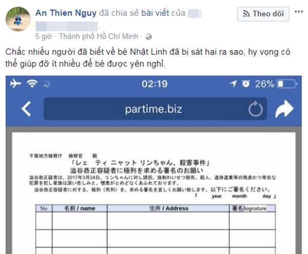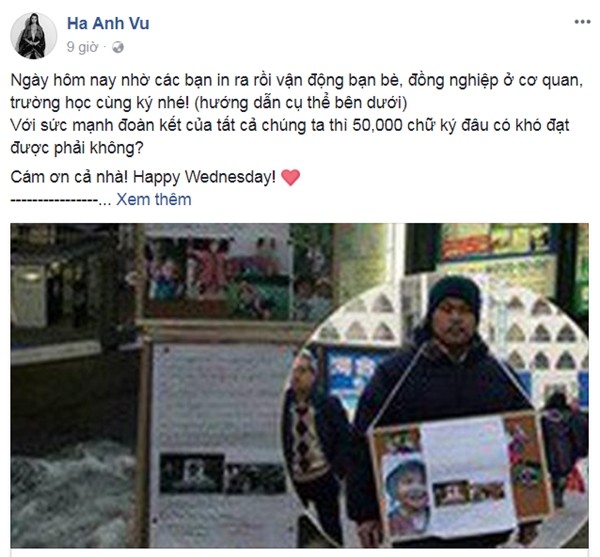 Không chỉ bày tỏ nỗi bức xúc khi kẻ thủ án không nhận tội cũng sự đồng cảm sâu sắc cùng gia đình bé Nhật Linh, nhiều sao Việt còn chia sẻ mẫu đơn để các fan cùng thu thập chữ ký. Siêu mẫu Hà Anh, Trang Trần, người mẫu Quang Đại, rapper Đinh Tiến Đạt còn tự in mẫu đơn và công bố địa điểm cụ thể để việc lấy chữ ký diễn ra nhanh chóng.