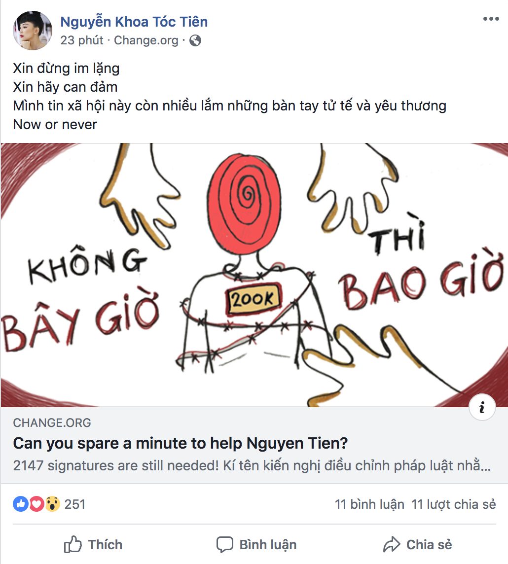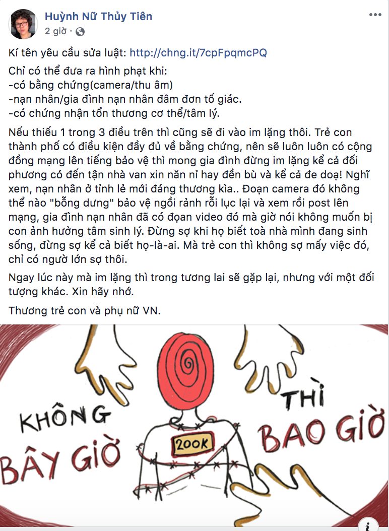 Cùng với thái độ quyết liệt, ca sĩ Tóc Tiên và Tiên Tiên kêu gọi mọi người đừng im lặng và hãy kí tên để có những động thái thực tế bảo vệ phụ nữ và các bé gái khỏi hành vi dâm ô, lạm dụng.