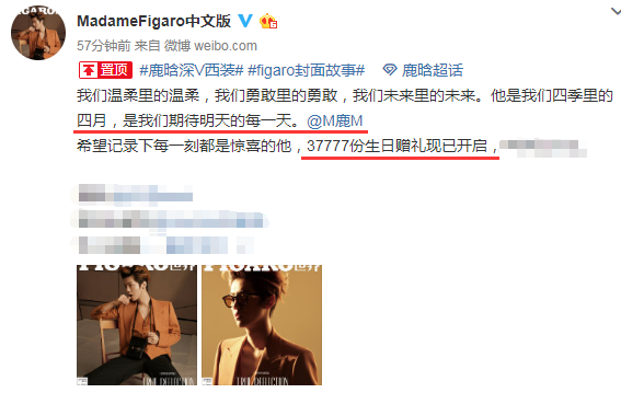 Đến ngày hôm nay (07.04), Lộc Hàm lại tiếp tục xuất hiện trên tạp chí nổi tiếng khác là Madame Figaro. Lần này cũng là trang bìa đôi của nam ca sỹ, tư thế tạo dáng vô cùng đẹp trai và quyến rũ, Lộc Hàm thử sức với những phong cách khác nhau.