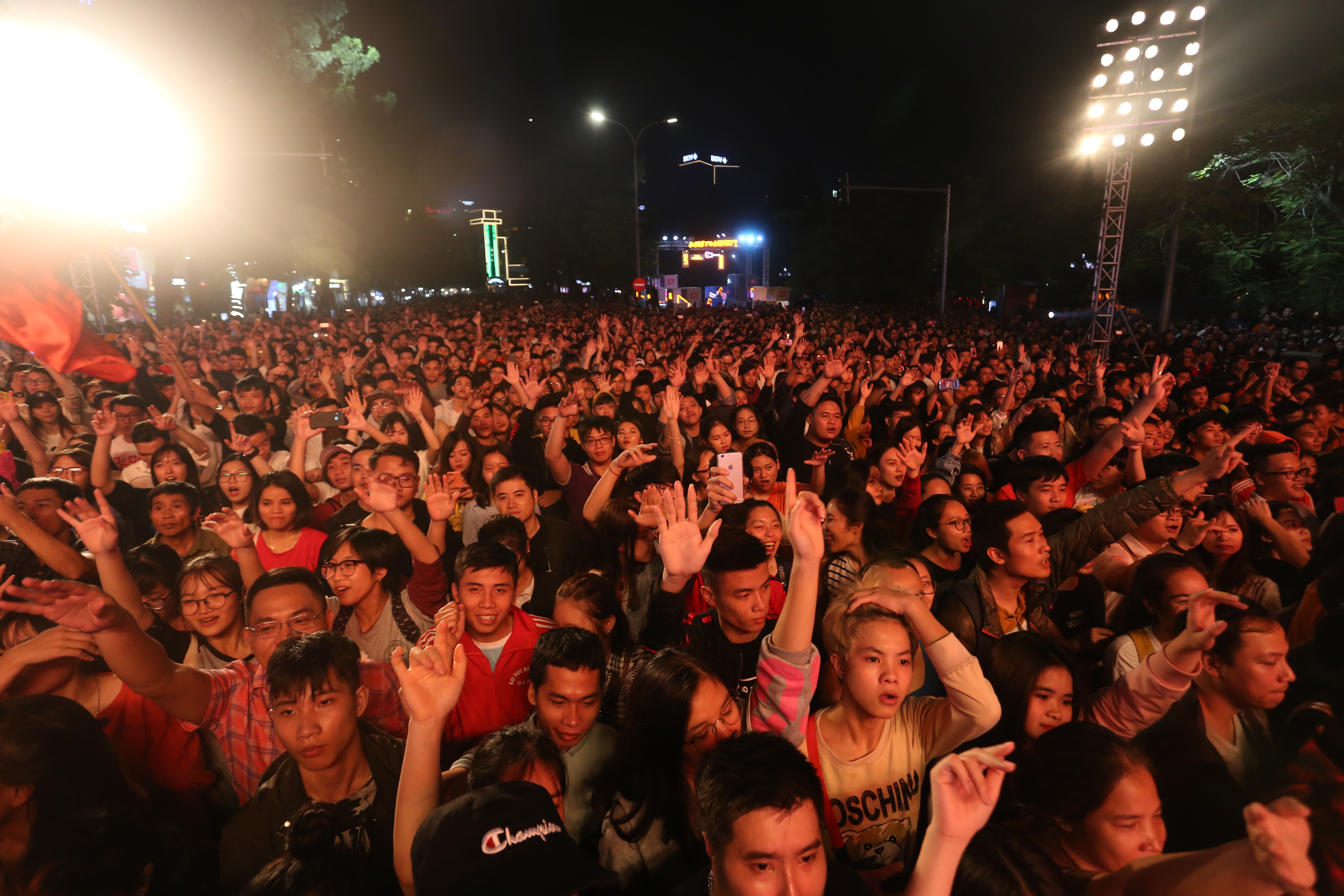Quảng trường nóng rực với hàng chục ngàn người hâm mộ cuồng nhiệt.