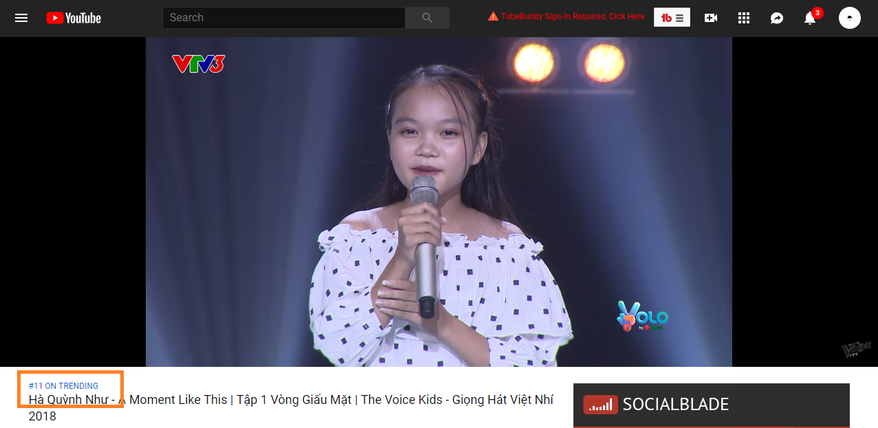 Qua nhiều năm tổ chức The Voice Kids - Giọng Hát Việt Nhí ngày càng chất lượng hơn từ format chương trình đến dàn thí sinh tham dự cũng được tuyển chọn kỹ lưỡng để bước vào vòng ghi hình. Ở tập đầu tiên, khán giả đã được mãn nhãn với những màn trình diễn thuộc nhiều thể loại âm nhạc khác nhau từ các thí sinh nhí tài năng. Các màn trình diễn ngay sau đó được đăng tải trên kênh youtube chính thức của Giọng Hát Việt Nhí để khán giả có thể theo dõi lại. Bất ngờ hơn, chỉ sau 1 ngày đăng tải, phần trình diễn của Hà Quỳnh Như với ca khúc A Moment Like This nhận được hiệu ứng tốt nhất so với 8 tiết mục còn lại và bất ngờ lọt top trending trên Youtube.