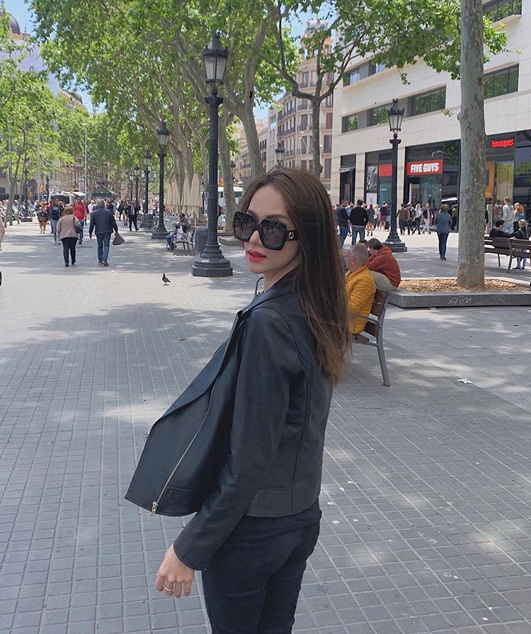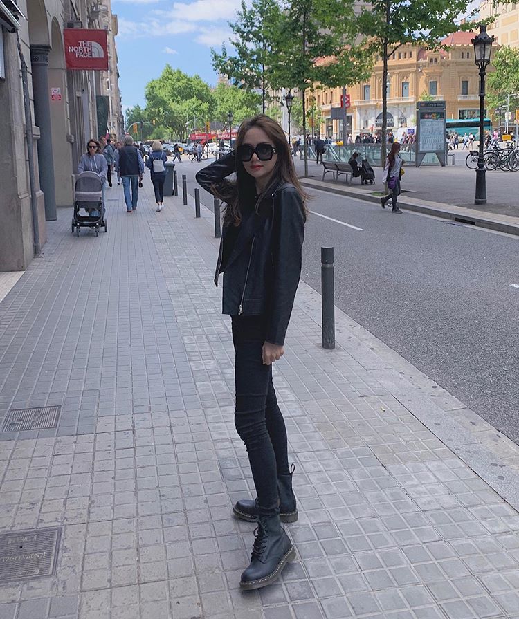 Người đẹp chia sẻ rằng “Tổng tài trong truyền thuyết là đây sao?”. Người đẹp diện 1 chiếc áo jacket da cùng với 1 chiếc quần jean đen. Không những thế, người đẹp diện 1 đôi boot da ấn tượng thu hút mọi ánh nhìn.