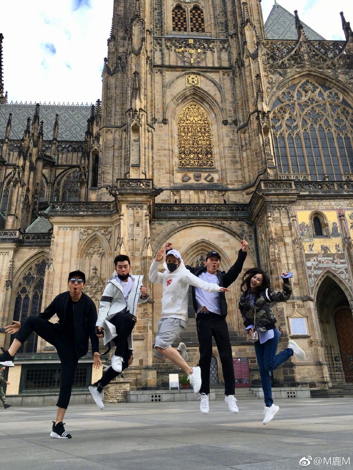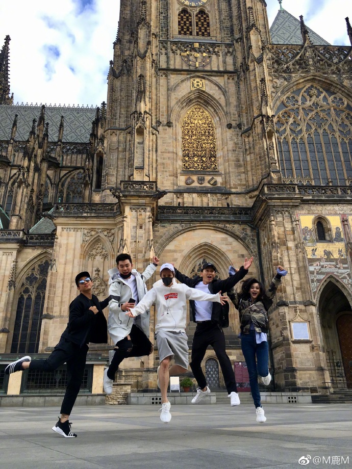 “Bỏ quên” tuổi tác, những ngôi sao của làng giải trí Hoa ngữ hòa mình vào niềm vui trước quần thể kiến trúc đặc trưng phương Tây. Cả nhóm đã có dịp lưu lại kỷ niệm bên nhà thờ chính tòa Thánh Vitus - một nhà thờ Công giáo La Mã ở Praha.