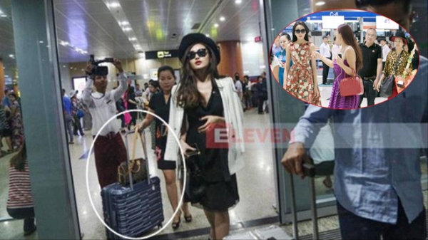 Trong một lần tới Myanmar, Huyền My lại bị tố để mẹ xách đồ cho mình, còn bản thân lại “sang chảnh” xách túi hàng hiệu bước đi trước sự chào đón của người hâm mộ.
