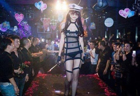 Hình ảnh được cho là Huyền My mặc nhạy cảm diễn quán bar. Tuy nhiên, quản lý của cô khẳng định đó không phải là Huyền My.