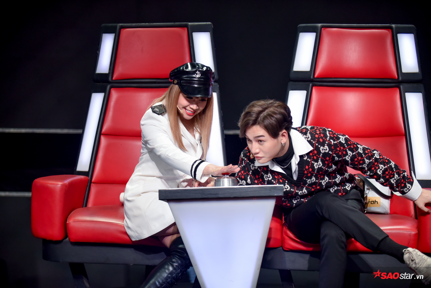 Nếu đội Hương Giang - Dương Cầm sử dụng “hào quang” của những chiếc vương miện hoàng tử, công chúa để “lôi kéo” thí sinh thì “cặp đôi nhà giàu” Dương Khắc Linh - Phạm Quỳnh Anh lại mang cả núi quà siêu to khổng lồ lên sân khấu. Duy chỉ Ali Hoàng Dương - Lưu Thiên Hương lại mang đến một chiêu bài dụ dỗ thí sinh hoàn toàn lạ lẫm nhưng vô cùng sáng tạo. Bộ đôi thầy trò chuẩn bị những chiếc áo choàng màu đỏ khoác cho mỗi thí sinh về với đội.