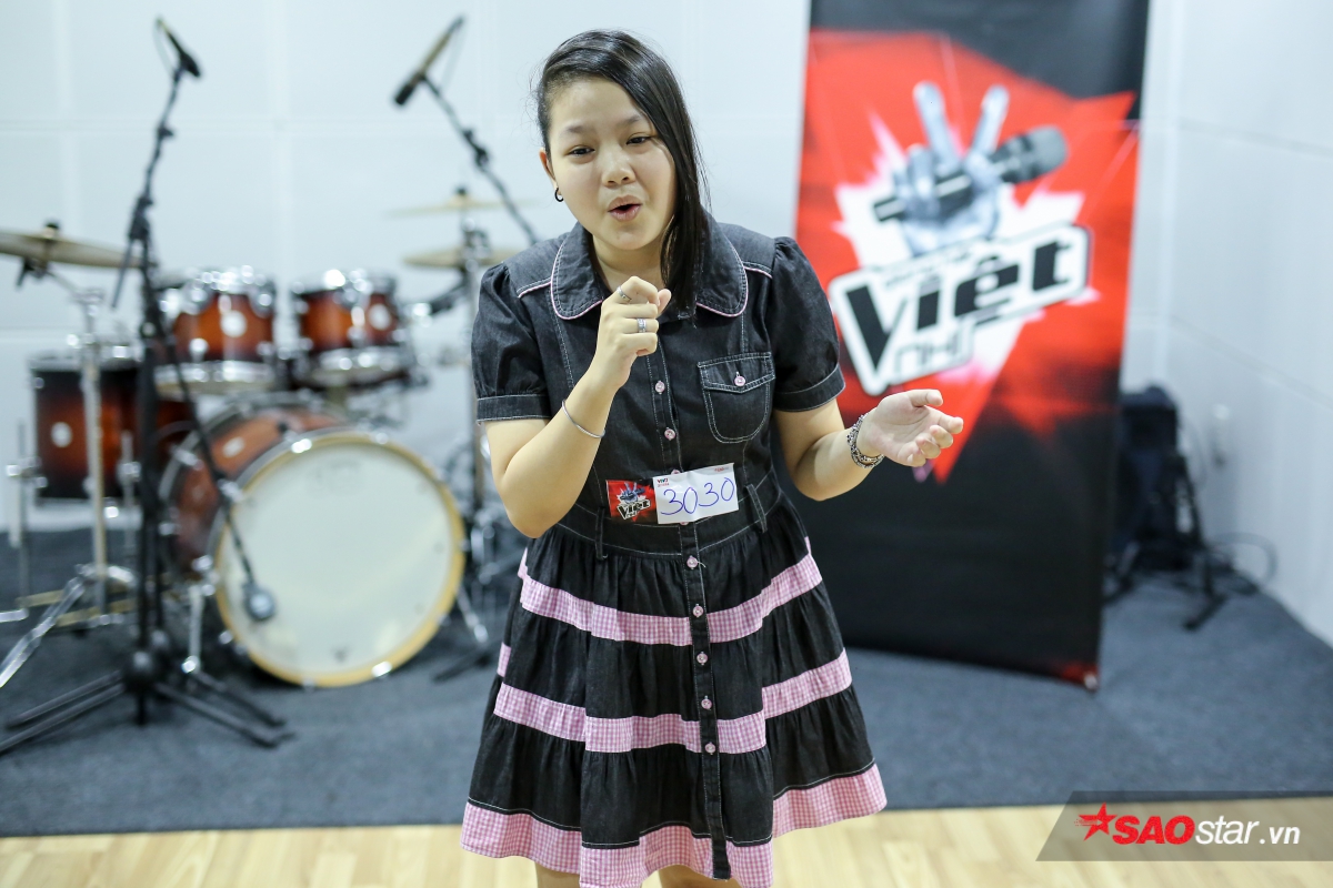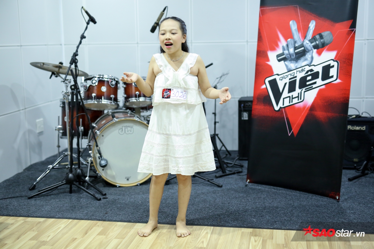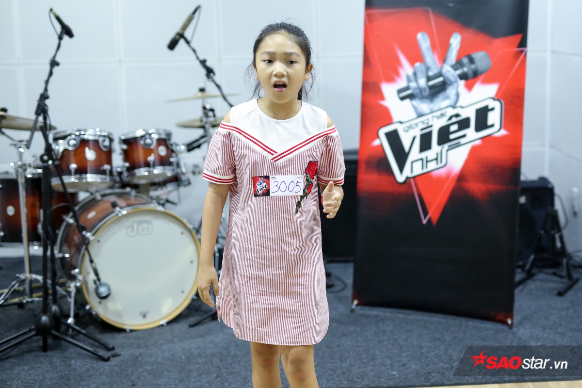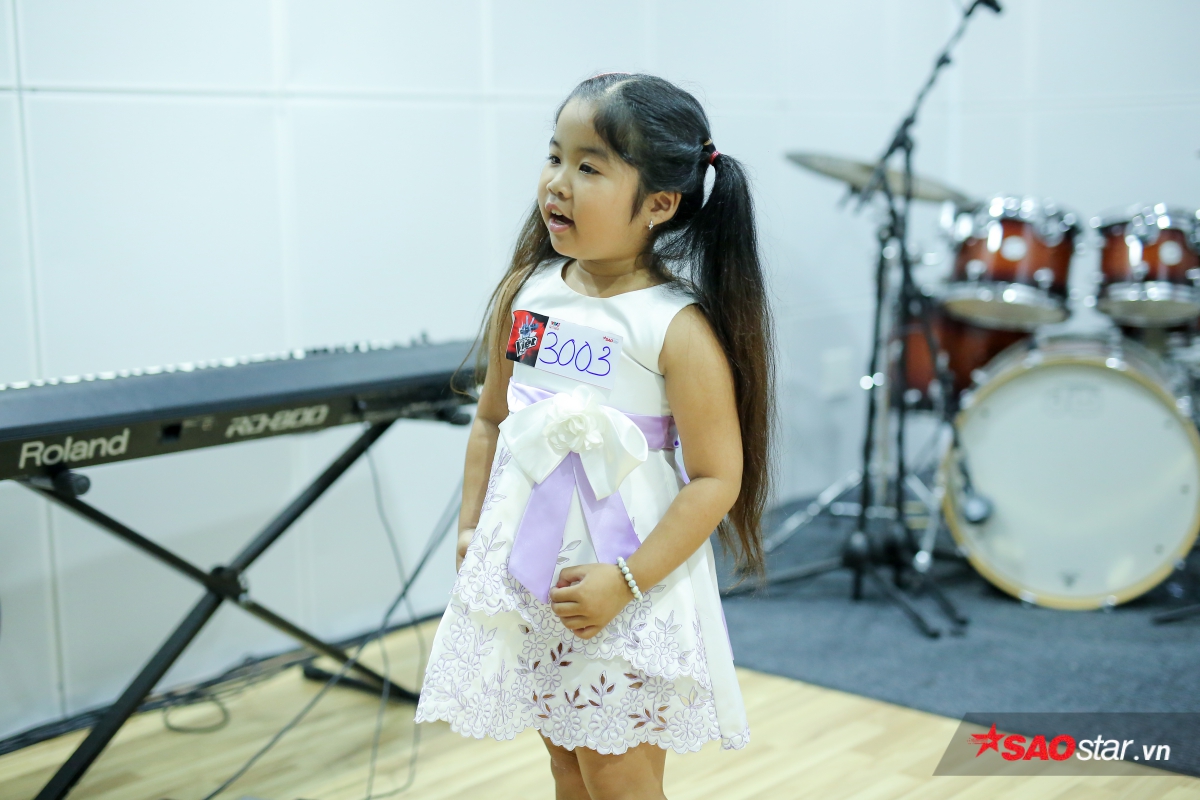 Một cô bé nhỏ xíu cũng mạnh dạn đến thử giọng trong buổi sáng nay.