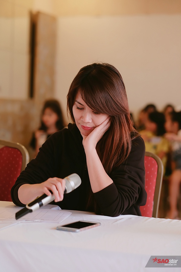 Cô chăm chú theo dõi các phần thi của thí sinh Giọng hát Việt nhí 2017.