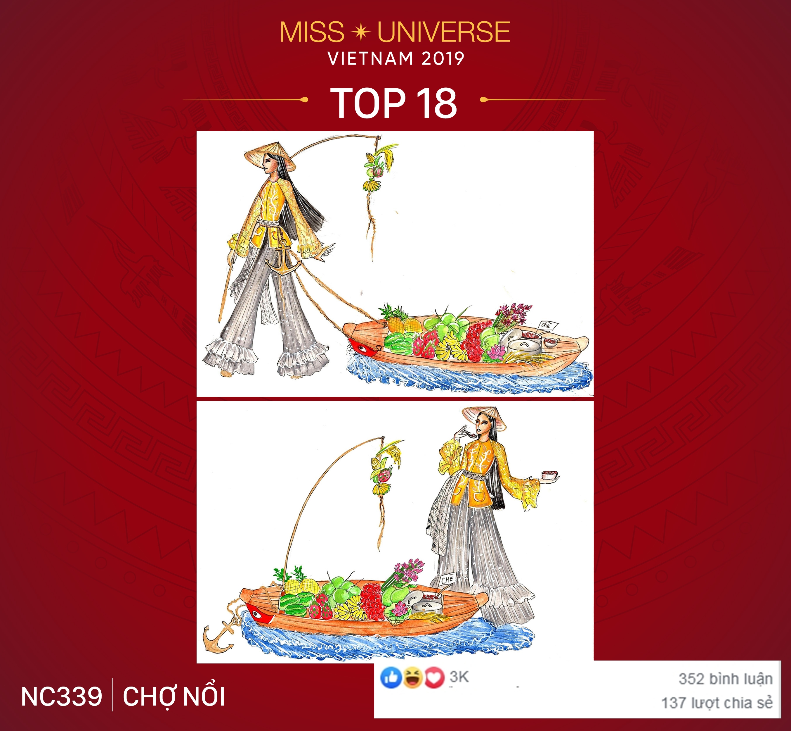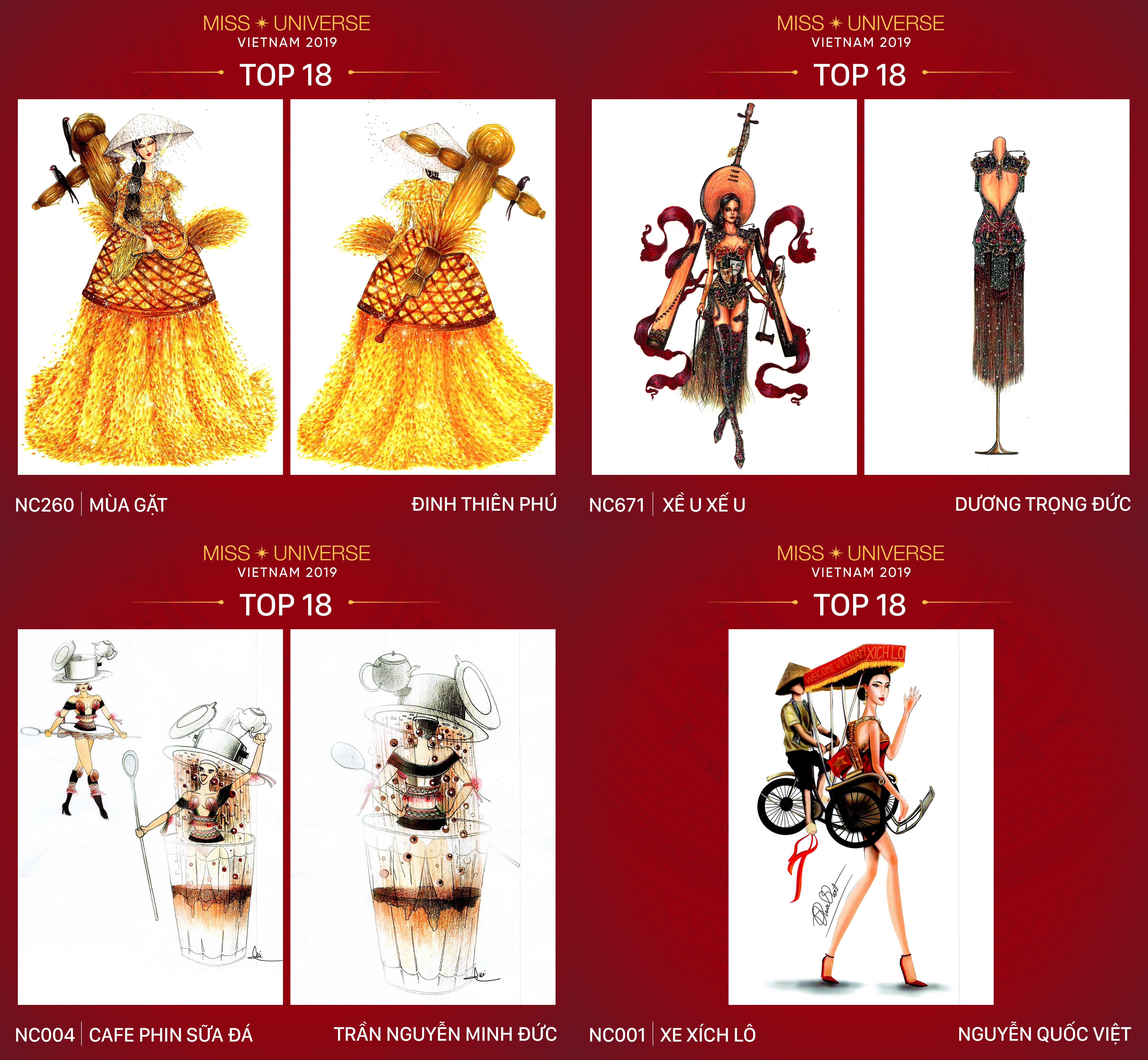 Ở vòng tuyển chọn cuối cùng, 15 bản vẽ bị loại, chỉ có 3 tác giả có bài thi thuyết phục nhất nhận được cơ hội thực hiện National Costume cho đại diện Việt Nam tại Miss Universe 2019.