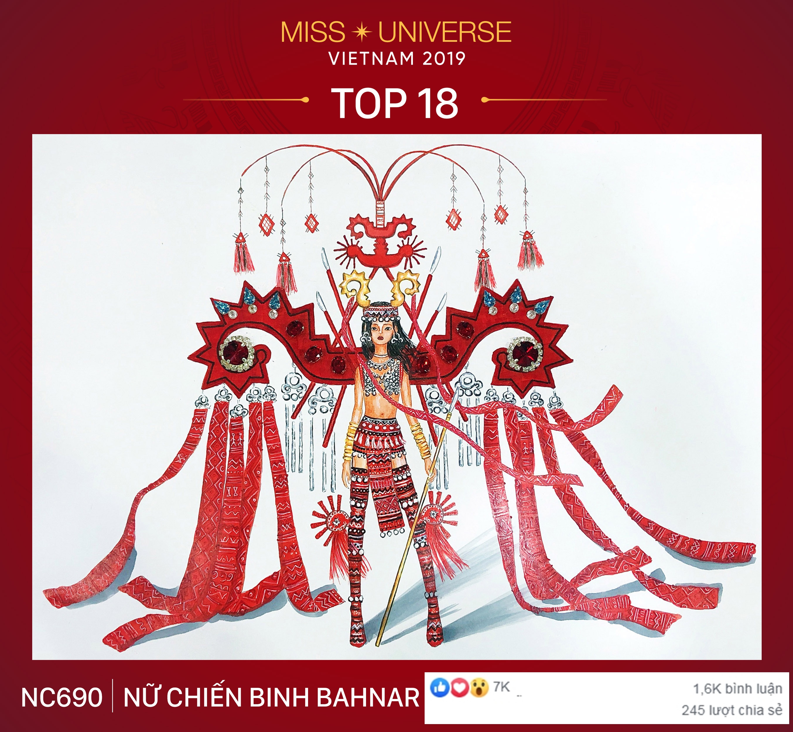 Cuộc thi tìm kiếm trang phục dân tộc cho Hoàng Thùy mang đến đấu trường nhan sắc quốc tế Miss Universe 2019 đã công bố Top 18 bài thi ấn tượng nhất, 5 bản vẽ cho fan bình chọn và 13 bài thi được điểm cao nhất từ bộ tứ giám khảo NTK Linh San, NTK Thuận Việt, hoa hậu H'Hen Niê, á hậu Lệ Hằng.