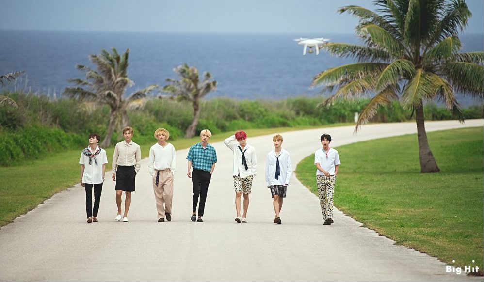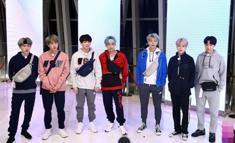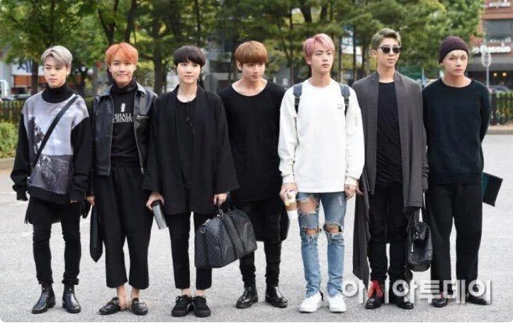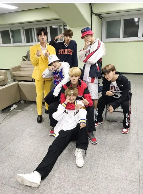 Ít nhất lần này Jin cũng đã hợp tác cùng các em khi mặc sơ mi, chỉ có điều là khác màu thôi, vậy nên hãy để anh đứng giữa đi nào mấy đứa.