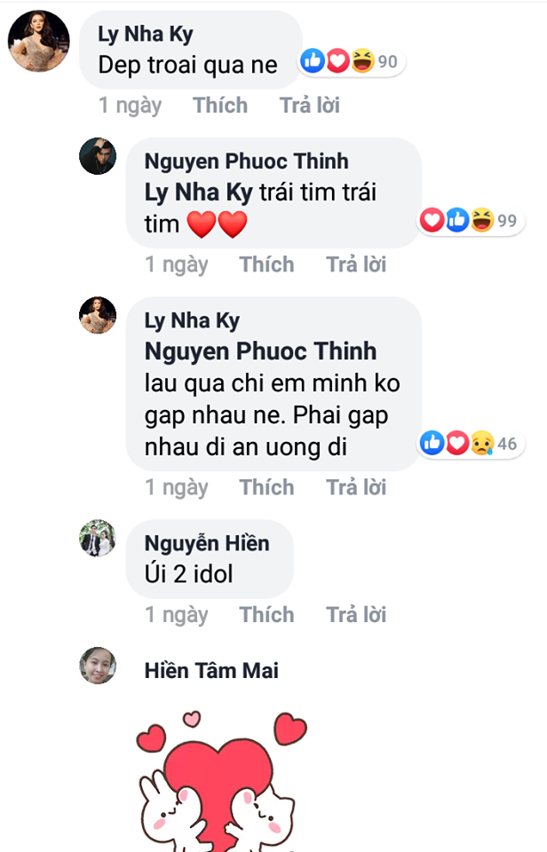 Nam ca sĩ cũng đáp lại đầy ngọt ngào:” trái tim trái tim”. Sau đó, cả hai còn hẹn nhau gặp mặt và cùng nhau ăn uống khiến các fan vô cùng thích thú.