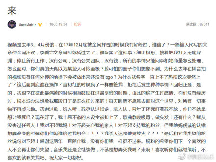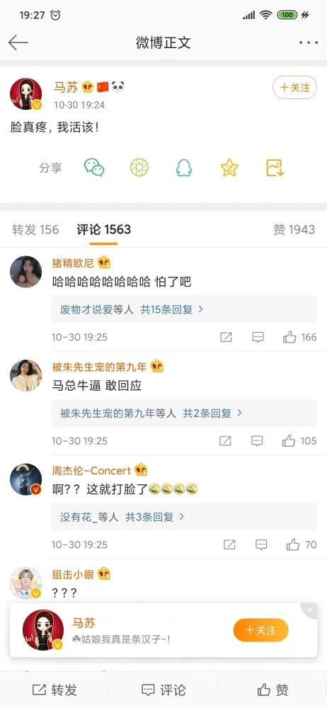 Với tin tức này, người được mệnh danh là “tú bà” mai mối Lý Tiểu Lộ cho PGone là Mã Tô cũng đã lên tiếng với bài đăng trên Weibo, trả lời về việc này: “Thật ê mặt, đáng đời tôi”. Được biết khi scandal xảy ra vào năm 2017, Mã Tô từng giúp Lý Tiểu Lộ giải thích, còn đứng ra “làm chứng” cho sự trong sạch giữa người bạn thân họ Lý cùng tình nhân bé nhỏ PGone.