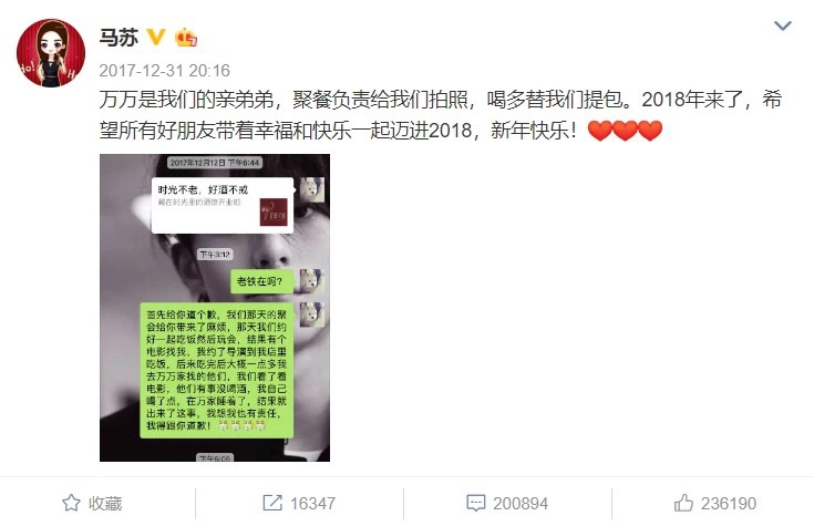 Trong hình ảnh Weixin năm xưa, Mã Tô chủ động gửi lời xin lỗi, cô nói rằng hôm đó mình cũng ở nhà PGone. Vì uống quá say nên cô đã ngủ lại ở nhà PGone nên bản thân cũng phải gánh một ít trách nhiệm về tin đồn của Lý Tiểu Lộ. Tuy nhiên rất nhanh thôi, Mã Tô đã nhận phải kết quả cay đắng.