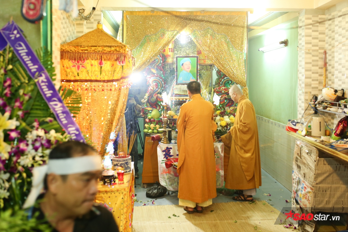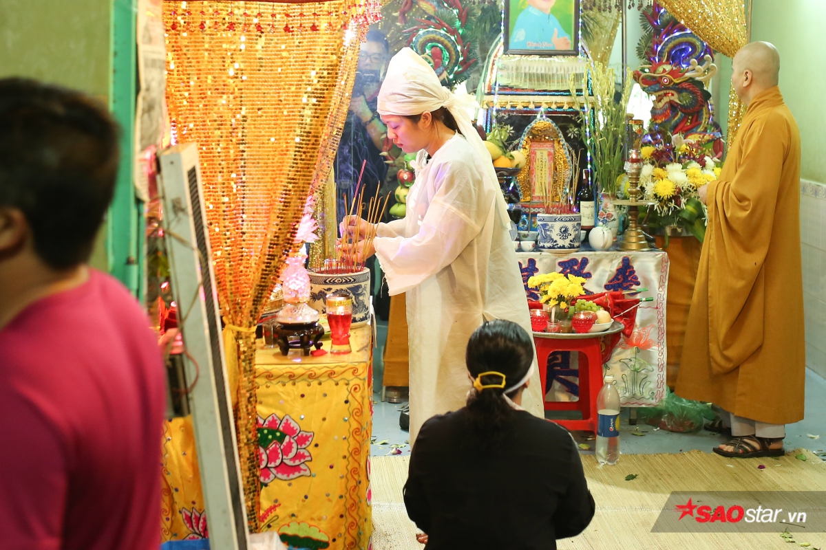 Trong khi gia đình và các nhà sư chuẩn bị nững nghi thức cuối cùng đưa tiễn nghệ sĩ Khánh Nam thì chị Giang - con gái của Khánh Nam liên tục nghẹn ngào, khóc nấc nhìn di ảnh người cha kính yêu. Lần đầu về nước sau 13 năm, chị không dám tin cũng là lần cuối được nhìn thấy bố.