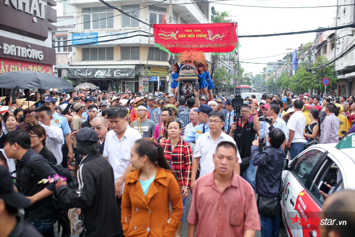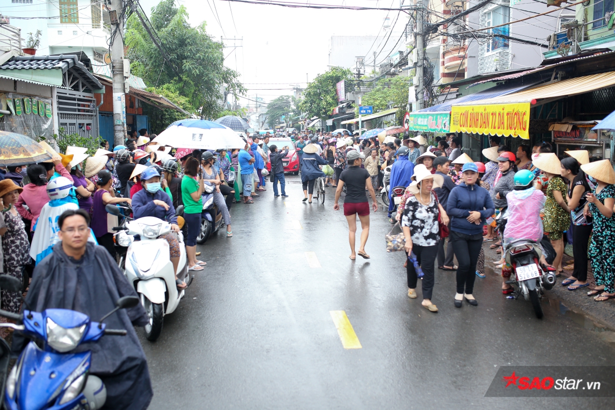 Dù trời mưa khá to nhưng con phố Dã Tượng, quận 8 vẫn đông nghịt người hai bên đường.
