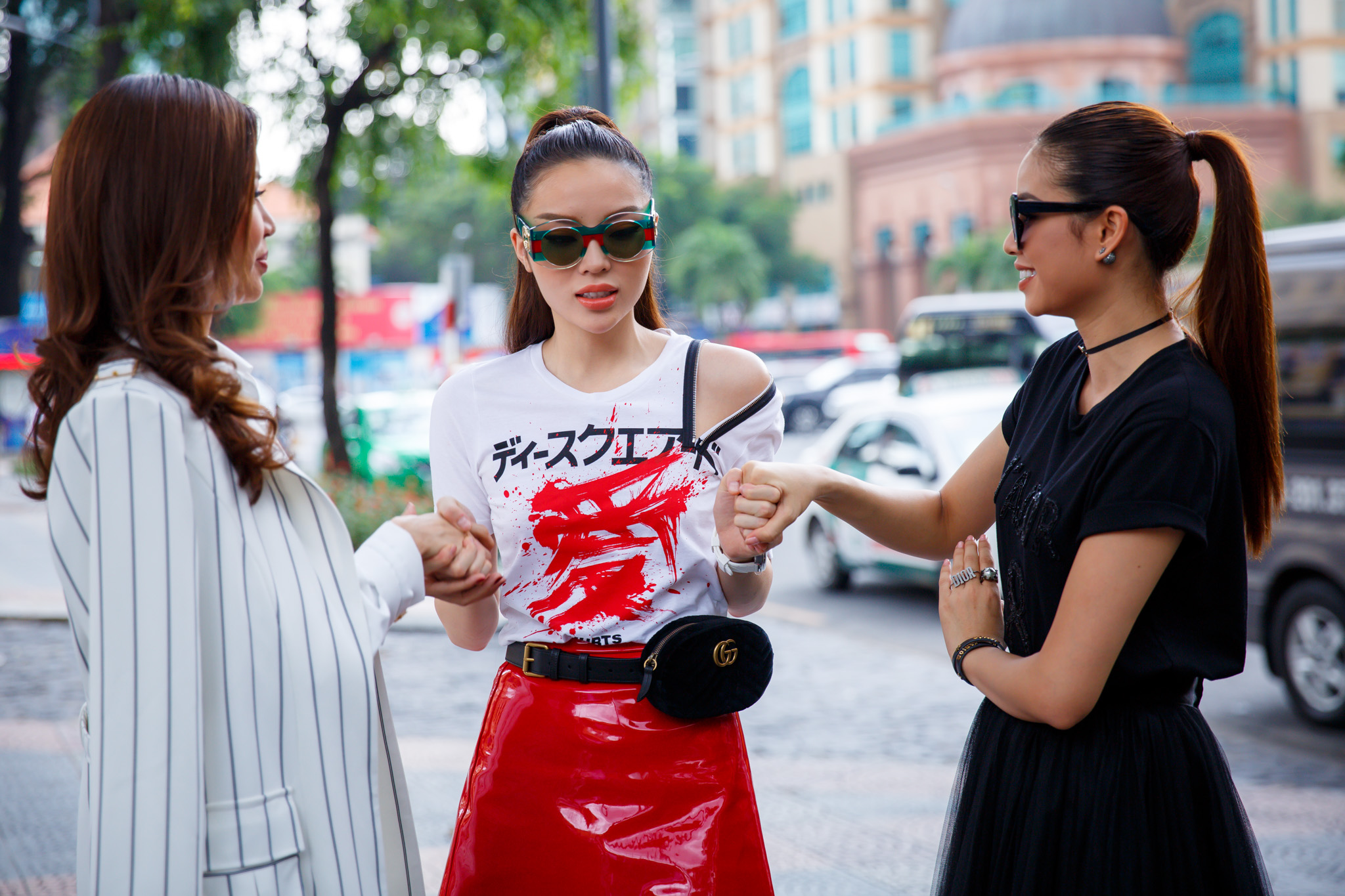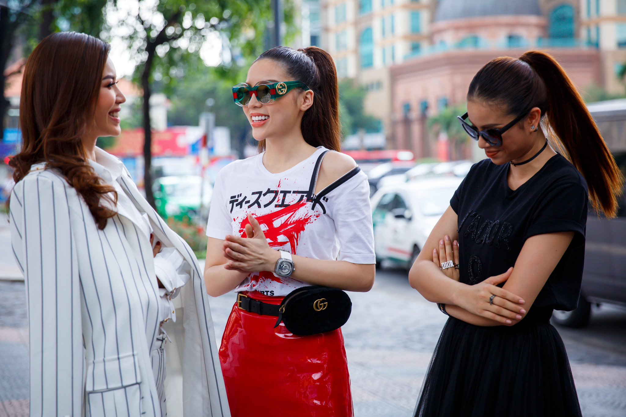 Nàng thơ của NTK Chung Thanh Phong còn bộc lộ khiếu hài hước trong những lần pha trò cùng hai huấn luyện viên còn lại.