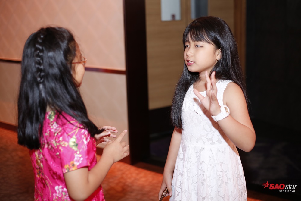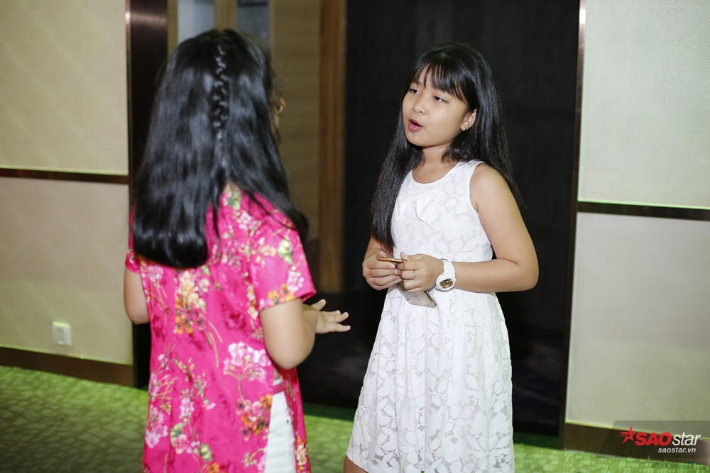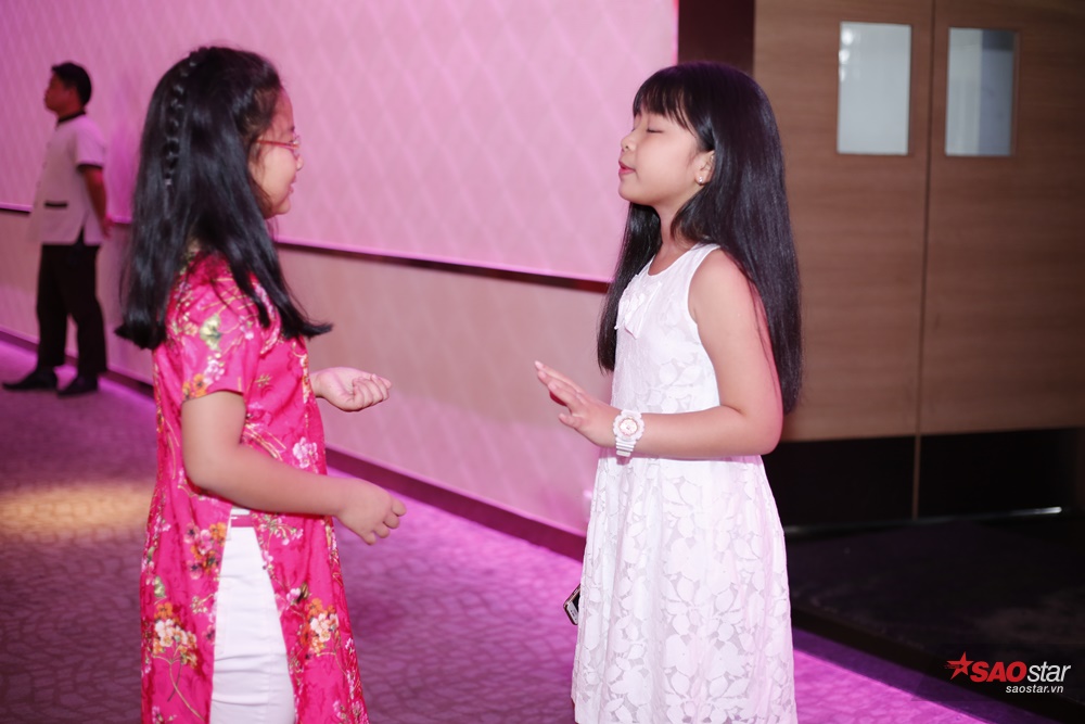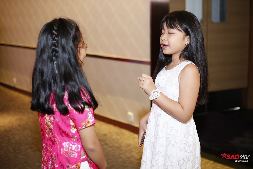 Bé Mai Anh tập hát cho thí sinh trong buổi sơ tuyển Giọng hát Việt nhí 2017.