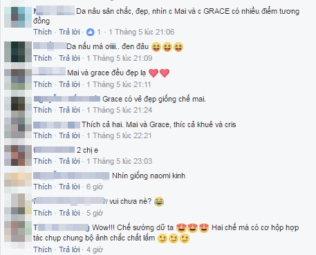 Các fan của Mai Ngô cũng nhận thấy hai cô nàng Mai Ngô và Grace có nhiều điểm chung như đều sở hữu làn da nâu khỏe khoắn với vẻ đẹp lạ, đều thực sự nổi bật trong cuộc thi và đều giành ngôi vị cao ở The Face của cả hai phiên bản.