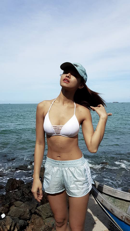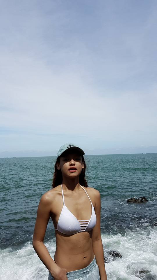 Mới đây, trên trang Facebook cá nhân, Mai Ngô chia sẻ loạt hình ảnh “hút mắt” khi diện áo tắm cùng quần thể thao đứng trên bờ biển.