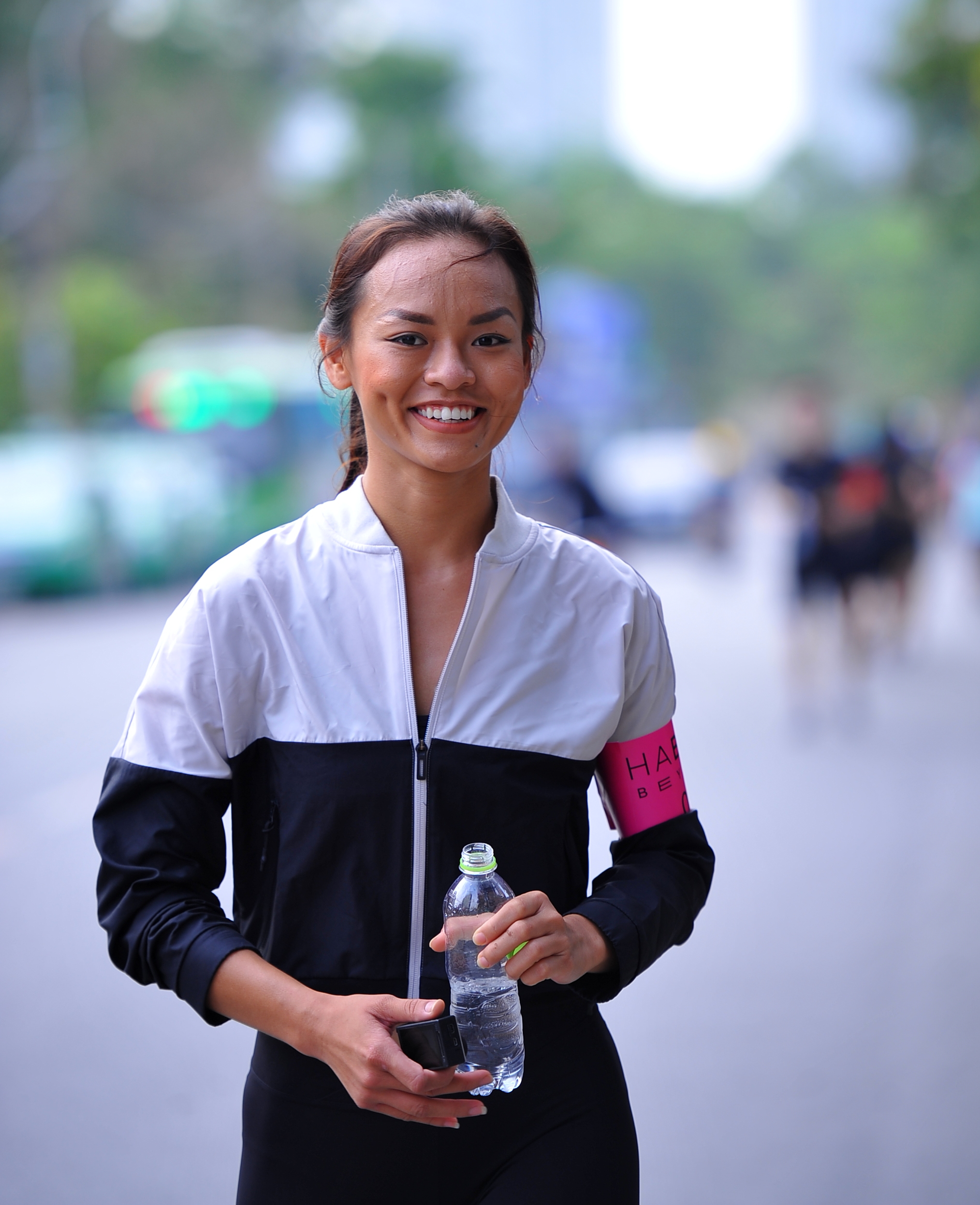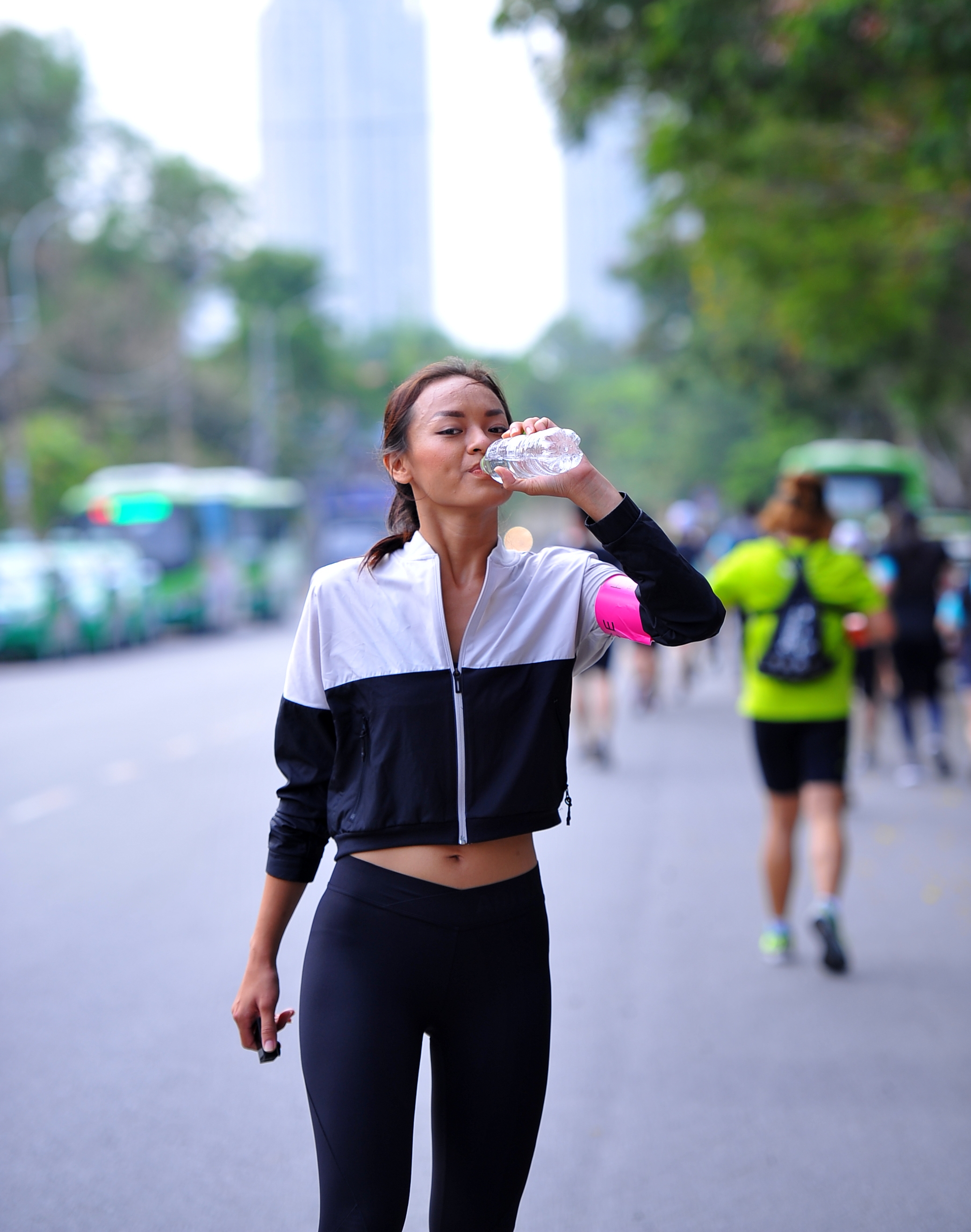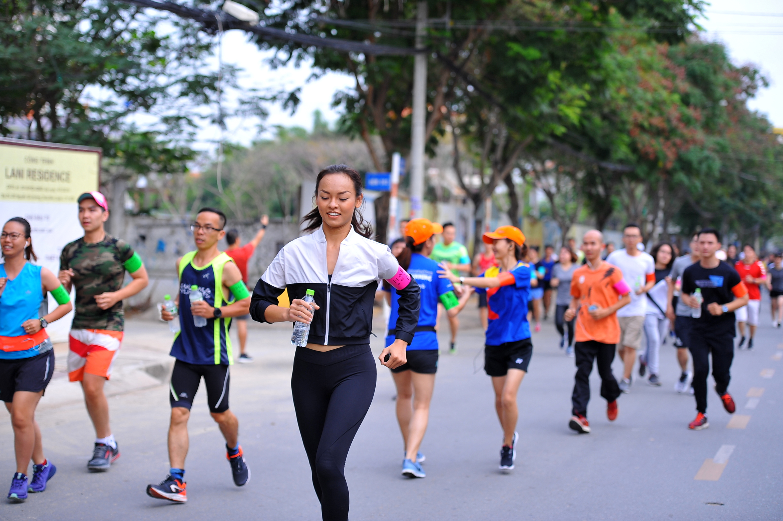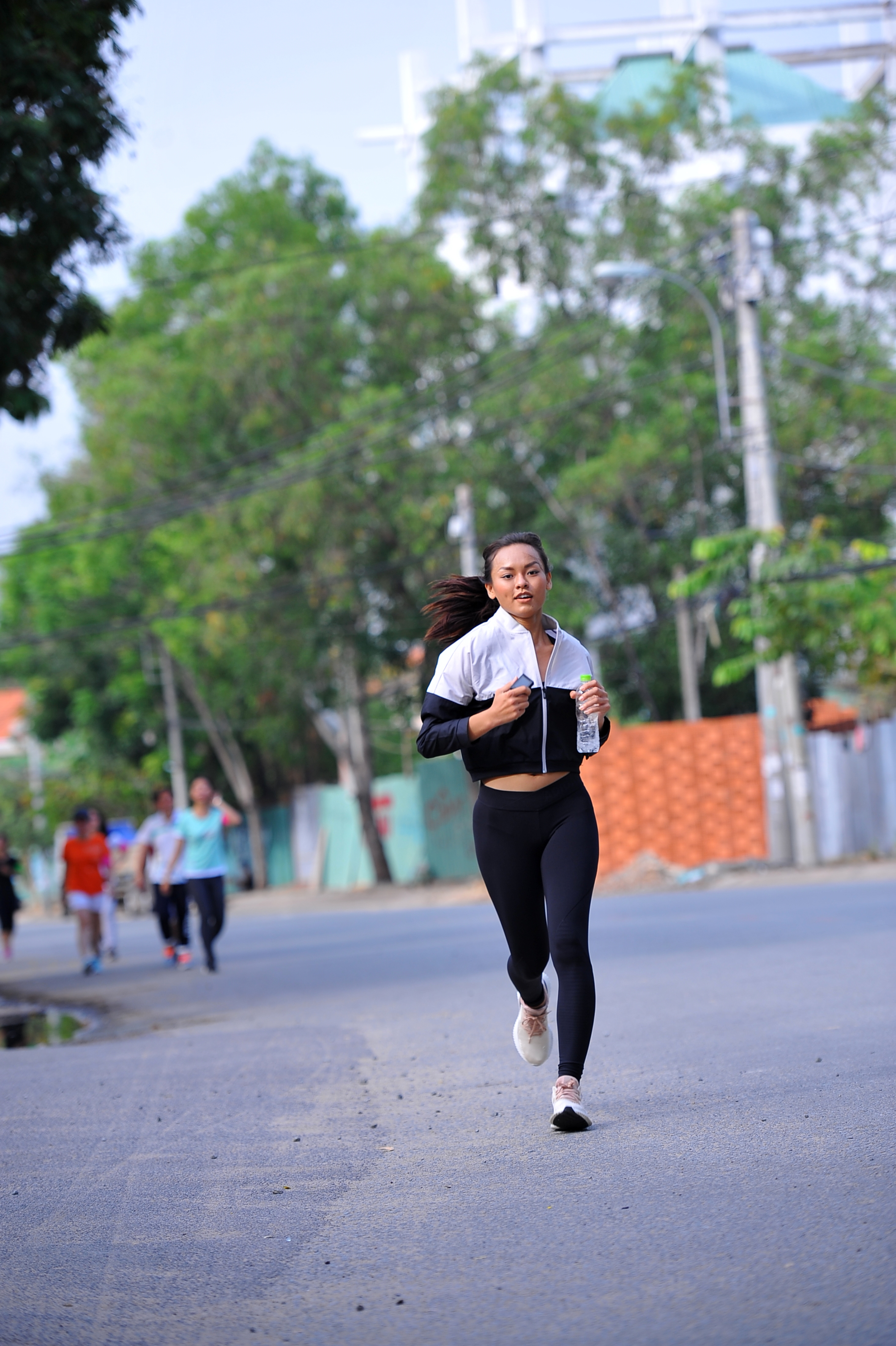 Nữ người mẫu nhiệt tình tham gia chạy bộ cùng mọi người.