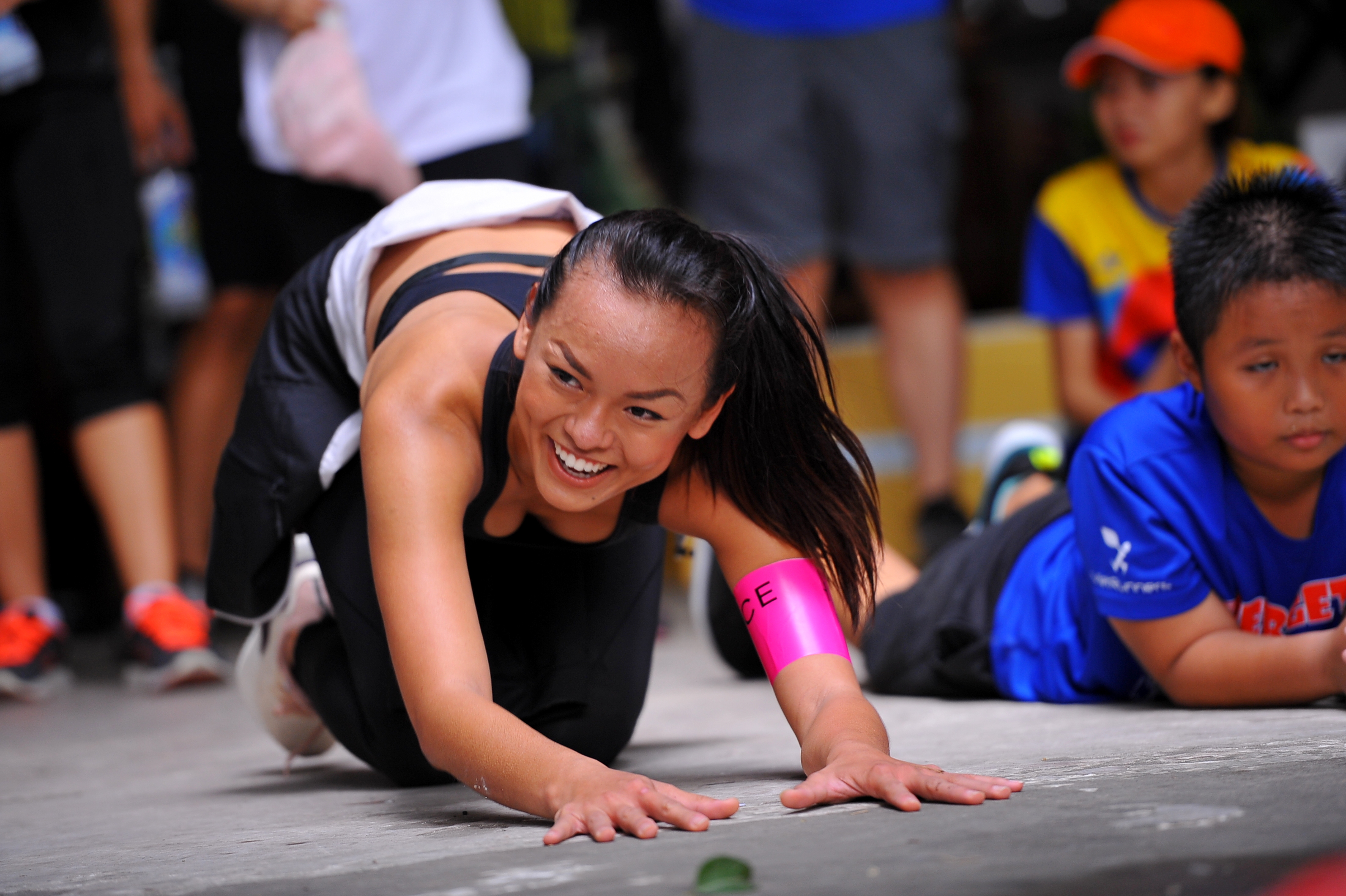 Học trò cưng Lan Khuê hào hứng tham gia các thử thách cùng các vận động viên và người tham gia.