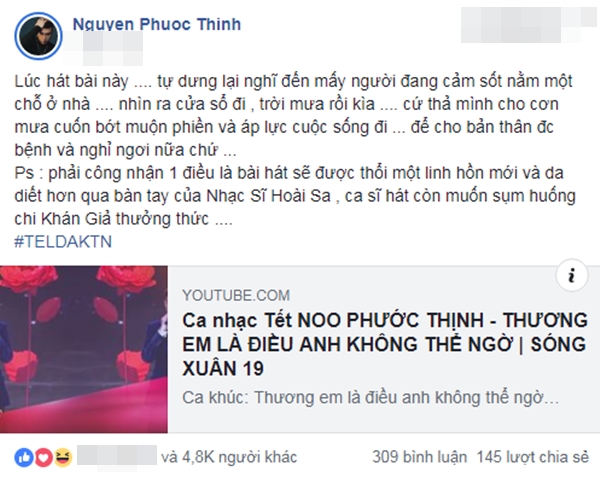 Chia sẻ “đậm màu thả thính” của Noo Phước Thịnh.