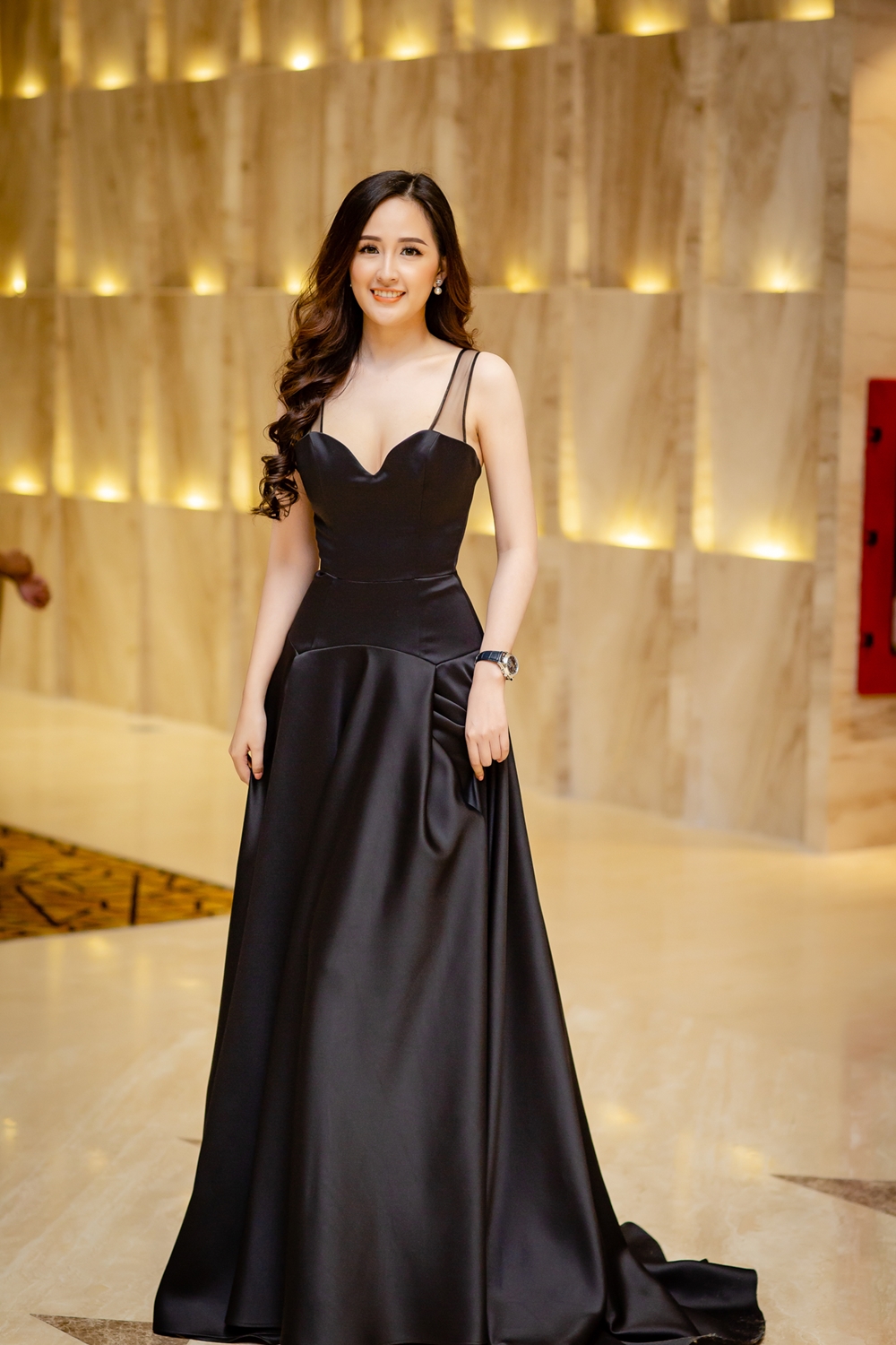 Chiếc váy dạ hội màu đen của NTK Minh Tú với thiết kế đơn giản nhưng vẫn tôn lên được vòng một đầy đặn cùng vóc dáng thanh mảnh của cô.