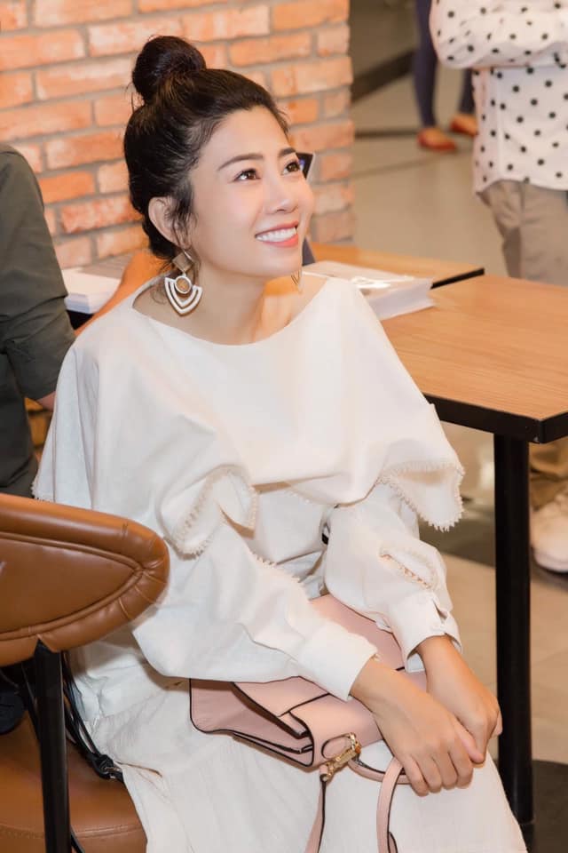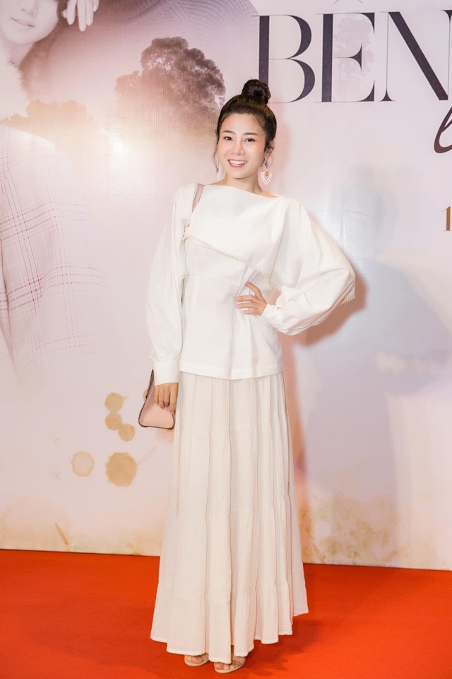 Tham gia một buổi ra mắt phim, Mai Phương vô cùng xinh đẹp và rạng rỡ. Cô diện một bộ váy màu trắng nhẹ nhàng và khoe nụ cười ngọt ngào.