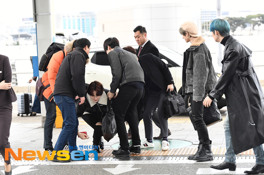Huening cảm thấy xấu hổ vì bị ngã nhưng đã cố gắng đi thẳng và chạy cậu ấy bị khập khiễng. Soobin ở cạnh đã dìu cậu bé bước đi. Trong khi, các thành viên khác liên tục liếc nhìn với ánh mắt quan tâm, lo lắng. Cậu bé bước vào sân bay, bất chấp nỗi đau cố gắng không làm người hâm mộ lo lắng.