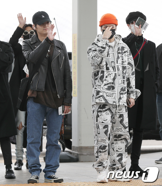 갓세븐 JB와 잭슨(오른쪽)이 '2019 엠넷 아시안 뮤직 어워즈'(2019 MAMA) 참석 차 3일 오전 인천국제공항을 통해 일본 나고야로 출국하고 있다. 2019.12.3/뉴스1
