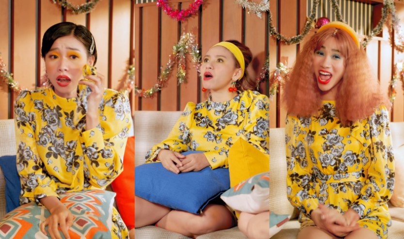 Ba chị em Nè He liên tục đưa ra những lý do “trên trời” để khẳng định việc đầm vàng đi với màu mắt xanh dương, màu mắt vàng hay màu mắt xanh lá mới đúng. Nhìn thành quả của màn make-up theo phong cách xanh xanh đỏ đỏ đến từ chị Nè He, ai nấy đều vã mồ hôi hột vì… hoảng hồn.