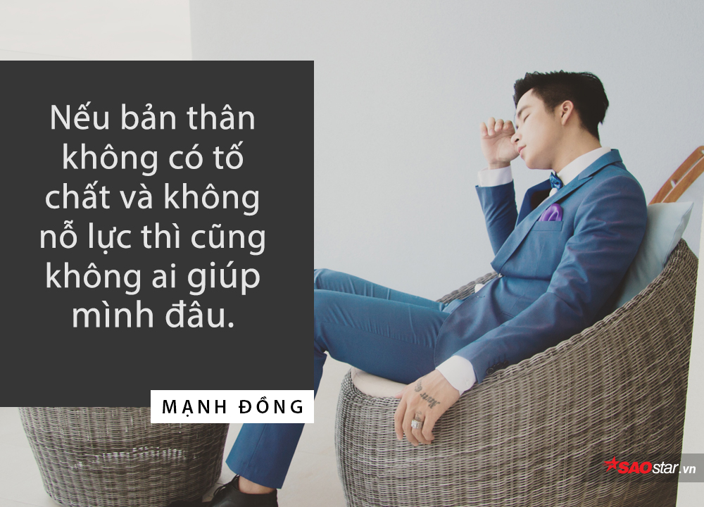 Từng có rất nhiều người ngỏ lời giúp đỡ nhưng Đồng không nhận lời. Đồng chỉ muốn được hát và cuộc sống mình mơ ước. Đồng sẽ xây dựng nó bằng chính sức lực của mình” - Mạnh Đồng nhấn mạnh.