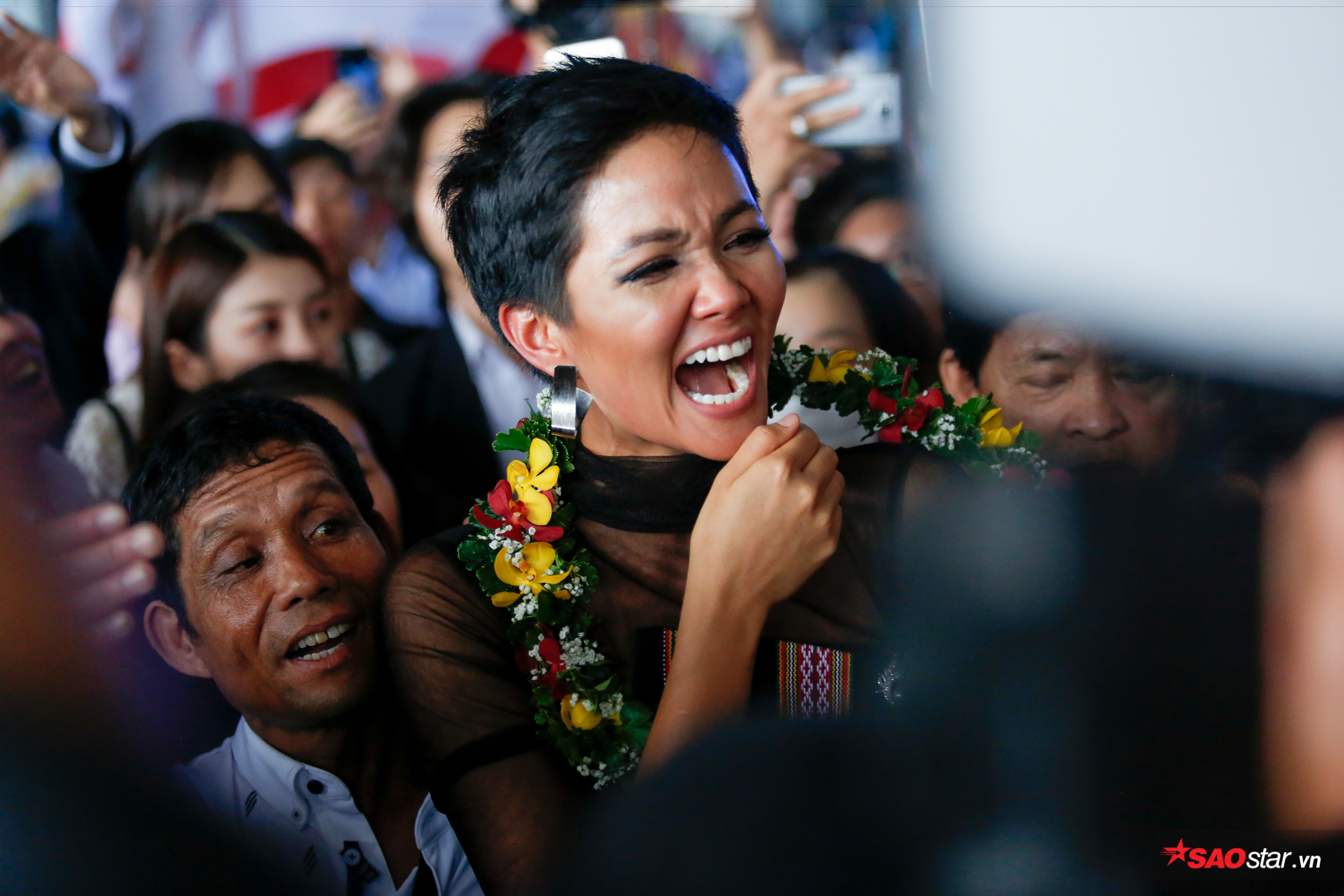 Khoảnh khắc chứng kiến sự chào đón cuồng nhiệt của người hâm mộ, Hoa hậu H'Hen Niê nghẹn ngào bật khóc trong vui sướng. Phải nói hành trình vừa qua cô gái nhỏ bé đã cố gắng rất nhiều vì sứ mệnh mang vinh quang về cho đất nước.