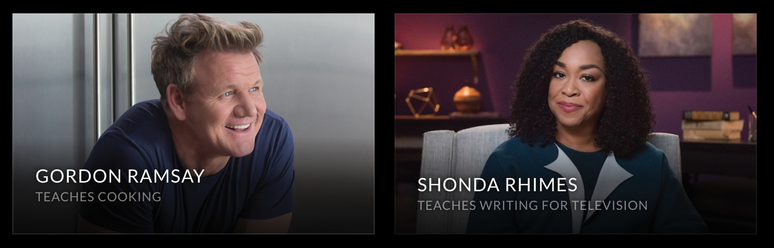 Nếu nhìn vào list các khoá học của Master Class hiện nay, có thể bạn sẽ cực kì khó khăn mới có thể chọn cho mình một lớp học. Vì sao? Vì tất cả các lĩnh vực và “giáo viên đứng lớp” của Master Class đều vô cùng hấp dẫn. Bạn không cần phải tham gia The Voice mới được Christina Aguilera huấn luyện, bạn không cần phải đăng kí Master Chef mới được nấu ăn cùng “người thầy hét ra lửa” Gordon Ramsay. Hay những tín đồ của những bộ phim truyền hình đình đám như Scandal, How To Get Away With Murder... có thể ngồi nghe biên kịch số 1 của truyền hình Mỹ - Shonda Rhimes chỉ dạy kĩ năng viết kịch bản phim “vạn người xem”.
