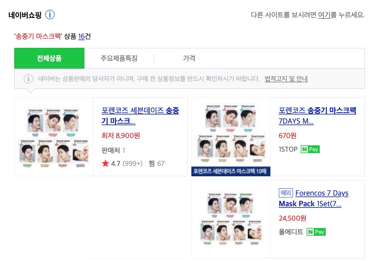 Naver Shopping đã liệt kê nhiều nhà cung cấp vẫn bán những mặt nạ này.