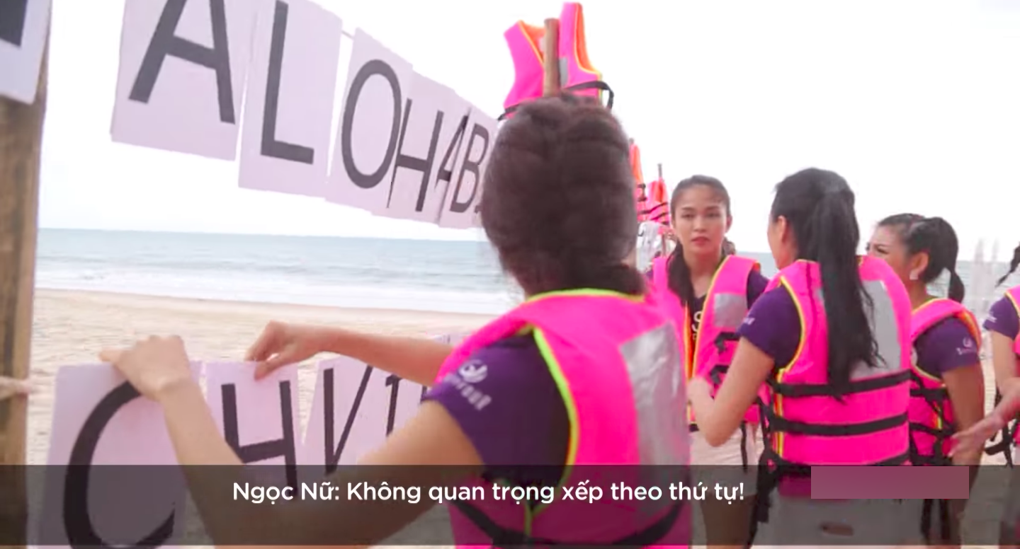 Các người đẹp được chia ra làm 5 nhóm để thực hiện thử thách vận động liên hoàn với nhiều chướng ngại vật. Sau khi vượt qua hết tất cả khó khăn để về đến đích, mỗi thành viên phải lựa chọn một chữ cái tương ứng với số từ 1-17. Nhóm chiến thắng là nhóm hoàn thành đầu tiên 17 chữ cái và hô to chữ cái mà nhóm ghép được.