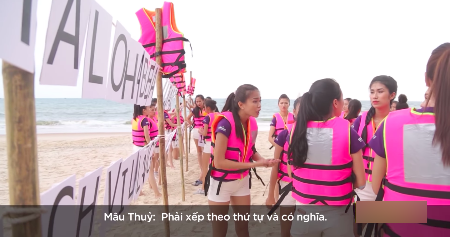 Người đẹp gốc Sài Thành chia sẻ: “Hai người ở đằng sau xếp chữ không hiểu ý của Thuỷ ngay từ đầu nên xếp tùm lum tùm la hết”.