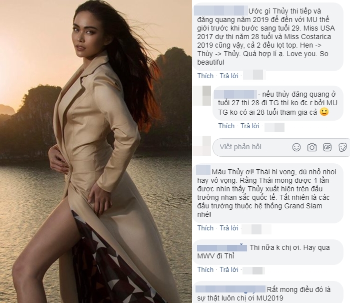 Với cuộc thi Miss Universe 2019, Á hậu 1 - Hoa hậu Hoàn vũ Việt Nam 2017 - Hoàng Thùy đang là ứng viên sáng giá nhất nhận được sự ủng hộ của các fan. Hoàng Thùy cũng chia sẻ bản thân mình đang tích cực chuẩn bị kỹ năng, hành trang cho lần thi nhan sắc quốc tế này. Trong khi đó, nếu Mâu Thủy quyết tâm thi Hoa hậu Hoàn vũ Việt Nam 2019, cô nàng cũng đã bước qua độ tuổi tham gia Miss Universe 2020. Thế nên, câu trả lời úp mở “Đang suy nghĩ” ngắn gọn lại khiến các fan khó hiểu đến “thao thức”.