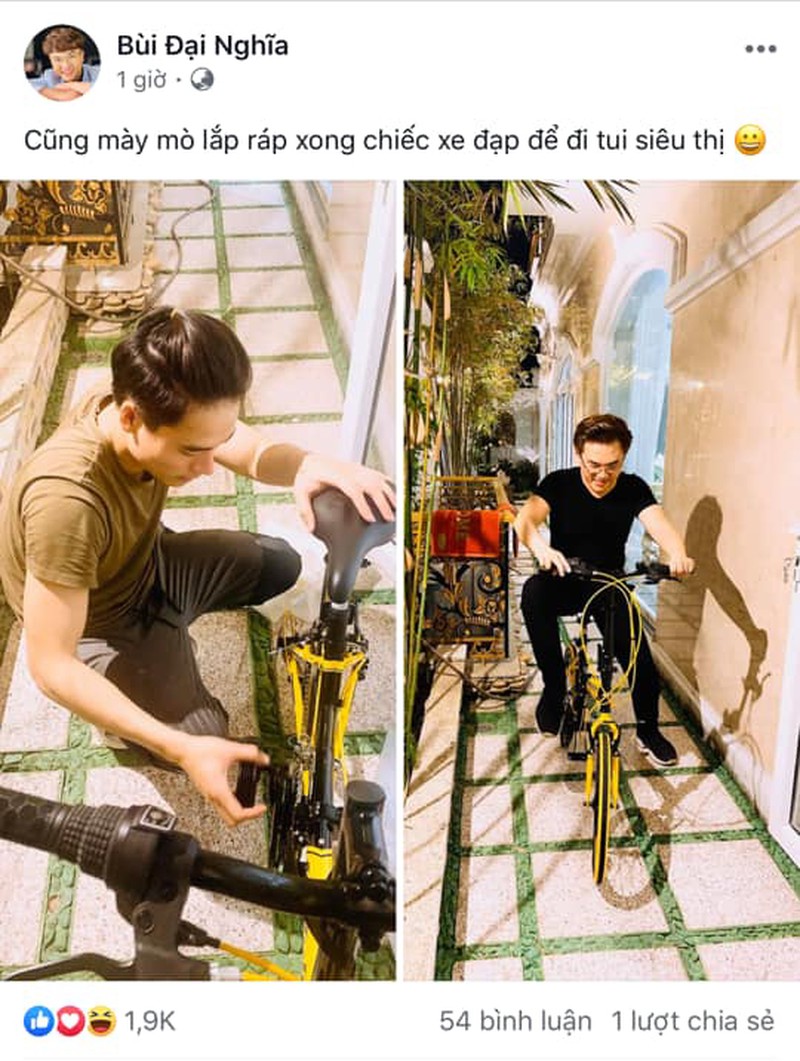 Theo đó, khán giả nhanh chóng phát hiện ra chiếc xe đạp dùng chung. Đại Nghĩa hào hứng khoe: “Cũng mày mò lắp ráp xong chiếc xe đạp để tui đi siêu thị”. Đi kèm là hình ảnh Quán quân Cười xuyên Việt 2017 đang cặm cụi lắp xe đạp.