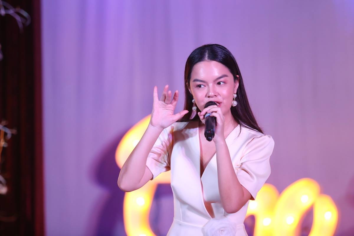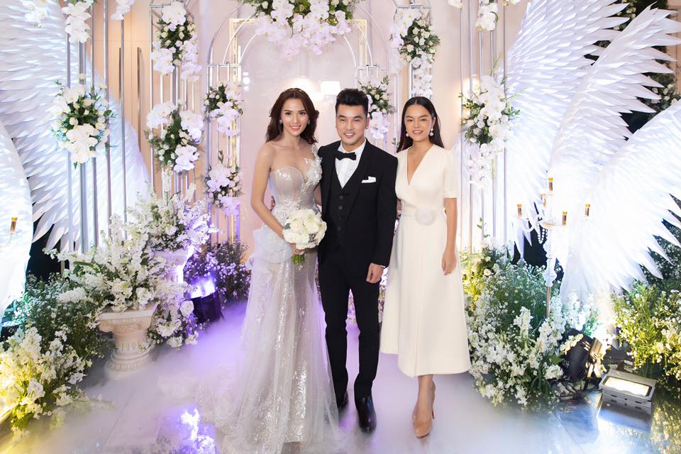 Chiếc váy Phạm Quỳnh Anh mặc tại sự kiện này cũng là chiếc đầm cô mặc khi tham dự đám cưới của Ưng Hoàng Phúc và người mẫu Kim Cương.