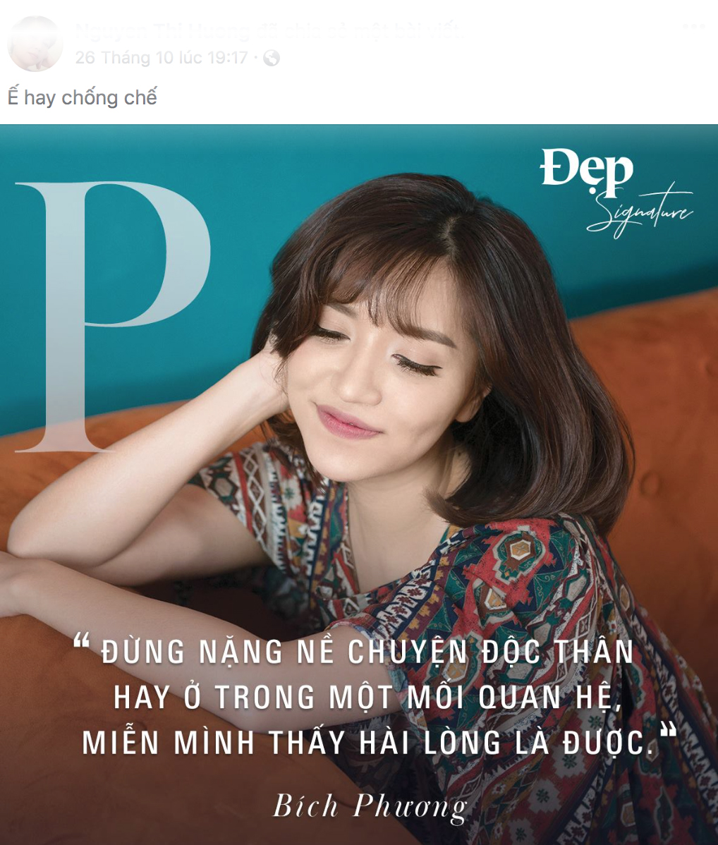 Dù có thiệt sự mong mỏi con gái 'lấy chồng' thế nhưng nhận rể kiểu này thì với mẹ Bích Phương cũng không tài nào nhận được. Hai mẹ con Sao Việt này khá 'lầy lội' và ăn ý, kẻ túng người hứng rất bày bản. Con gái phát biểu triết lý: “Đừng nặng nề chuyện độc thân hay ở trong một mối quan hệ, miễn mình thấy hài lòng là được”. Thì mẹ ở nhà đăng tải với caption ghẹo ngay ngay: “Ế hay chống chế”.