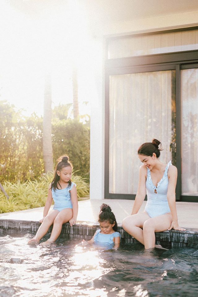 Chia sẻ những bức ảnh khi diện đồ bơi family, giọng ca Tất cả sẽ thay em chia sẻ rằng gia đình mình toàn chân ngắn. Và nữ ca sĩ nhận ra một điều rằng, có con gái thực sự rất thú vị.