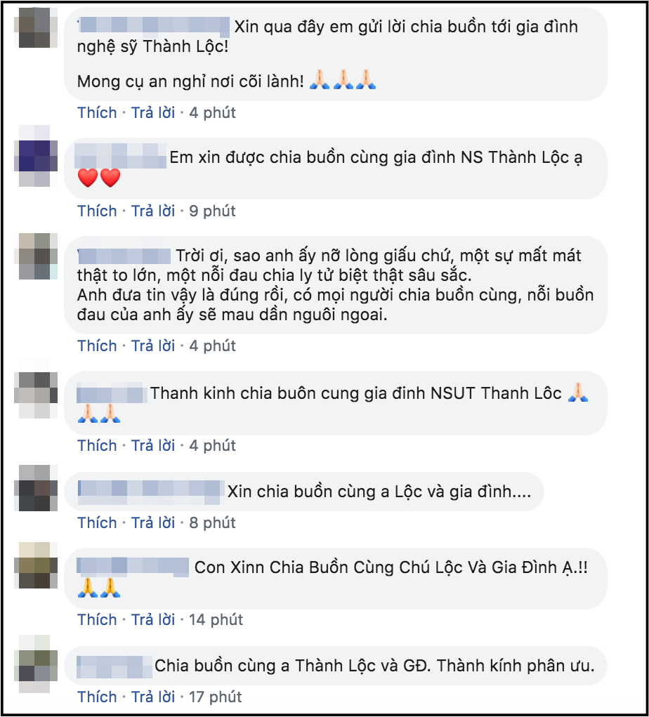 Khán giả gửi lời chia buồn sâu sắc đến Thành Lộc.