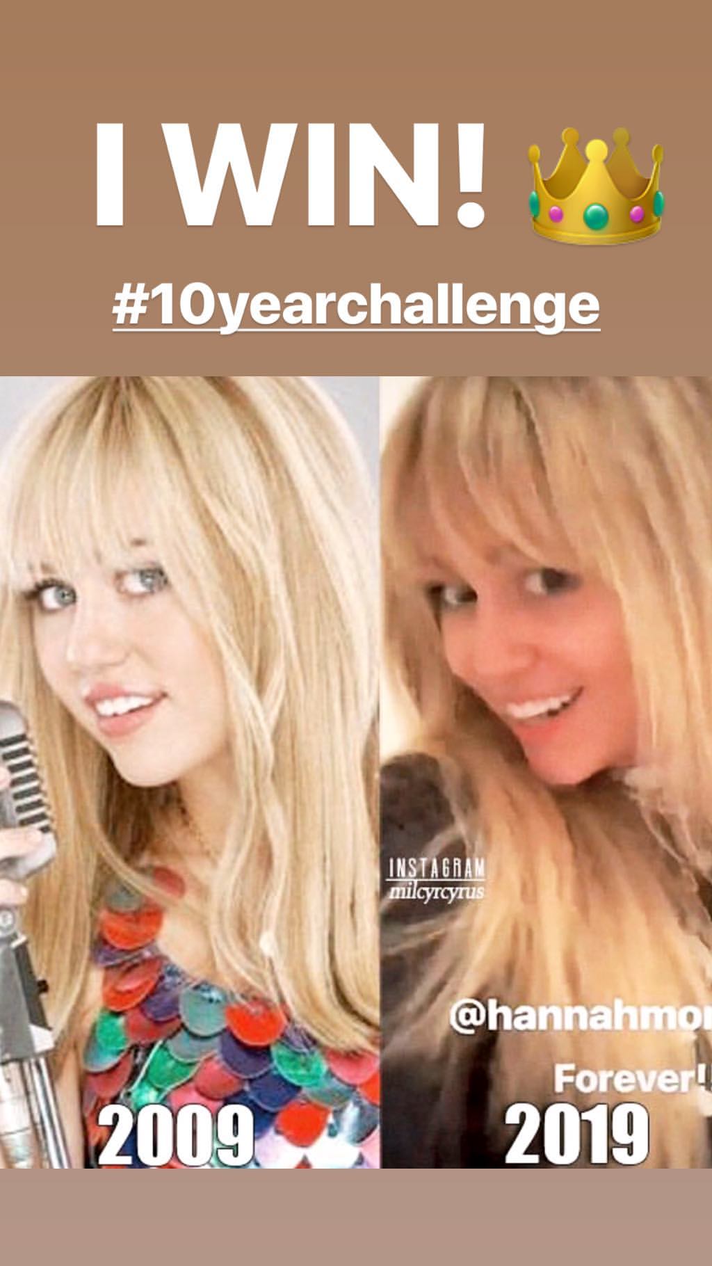 Bức ảnh được Miley so sánh trên trang cá nhân về tạo hình Hannah Montana và hiện tại không hề khác nhau nhiều, trông cô nàng vẫn trẻ trung xinh đẹp như thuở mới 16.