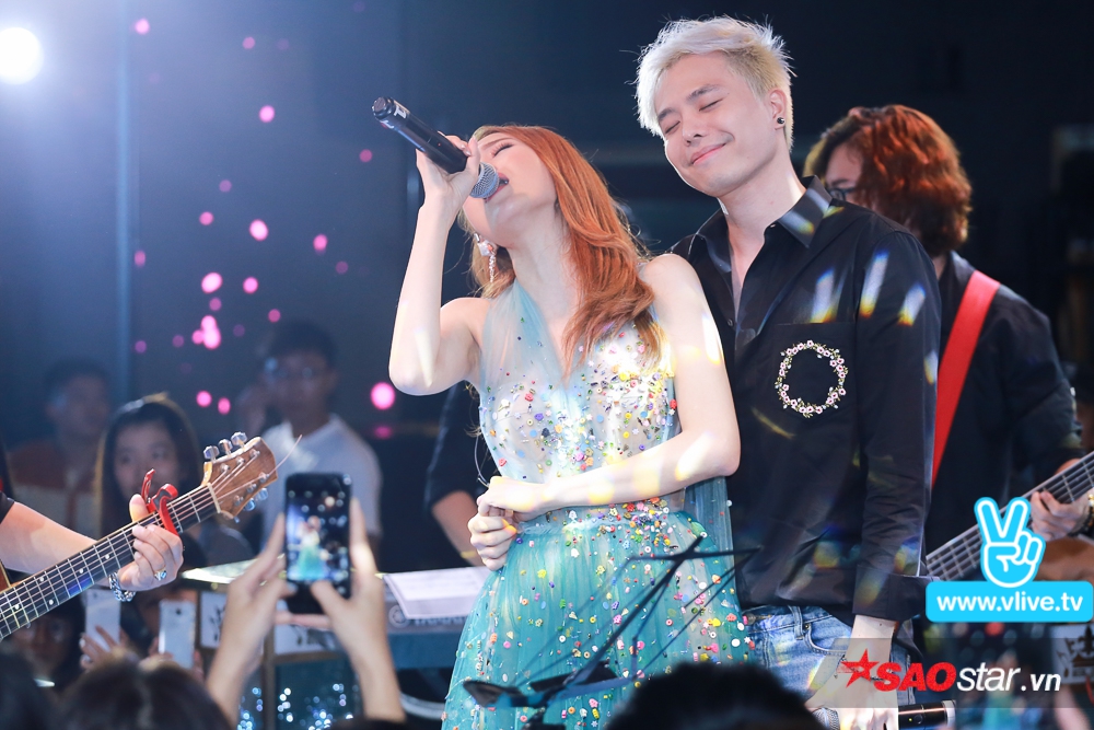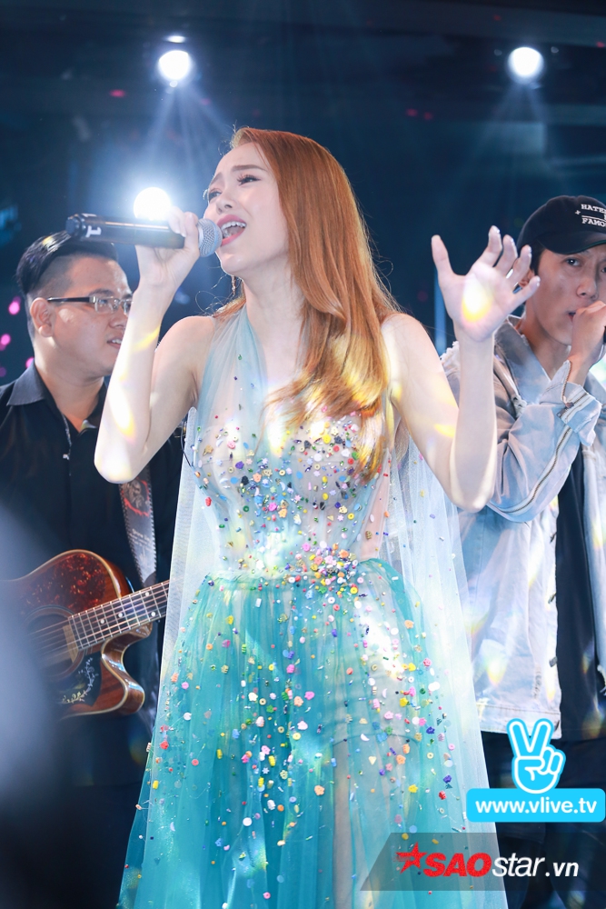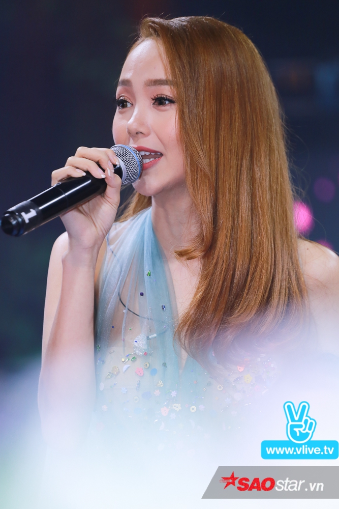 Liền sau đó, cô cũng “chiều” fans khi cover ca khúc Có em chờ của Min. Tiết mục nhận được sự cổ vũ nhiệt tình từ phía khán giả.